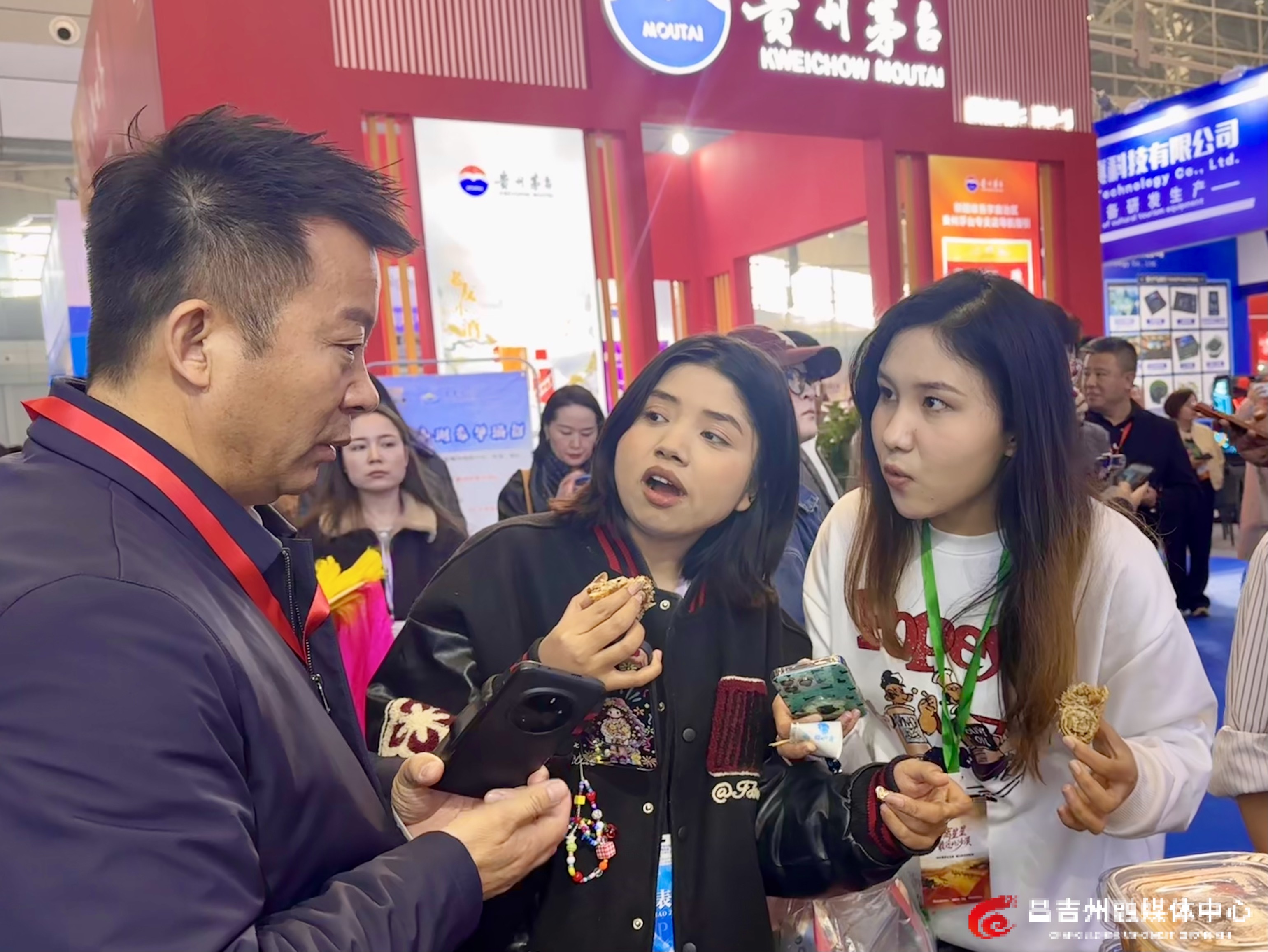 昌吉州展馆内,参展人员正在向游客介绍昌吉州特色美食。记者田春雨 摄