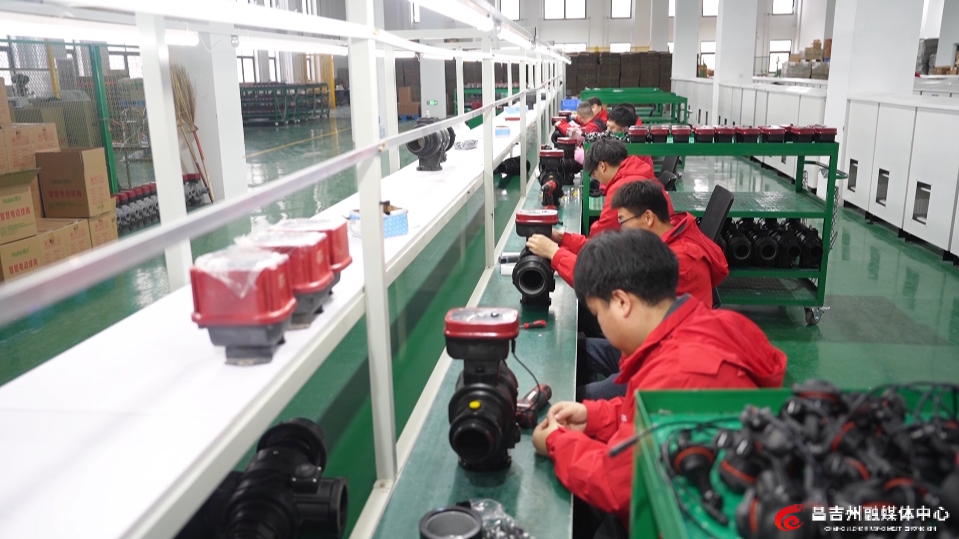 工人们正在加紧生产智慧电动球阀、水肥一体机。通讯员张伟继 摄