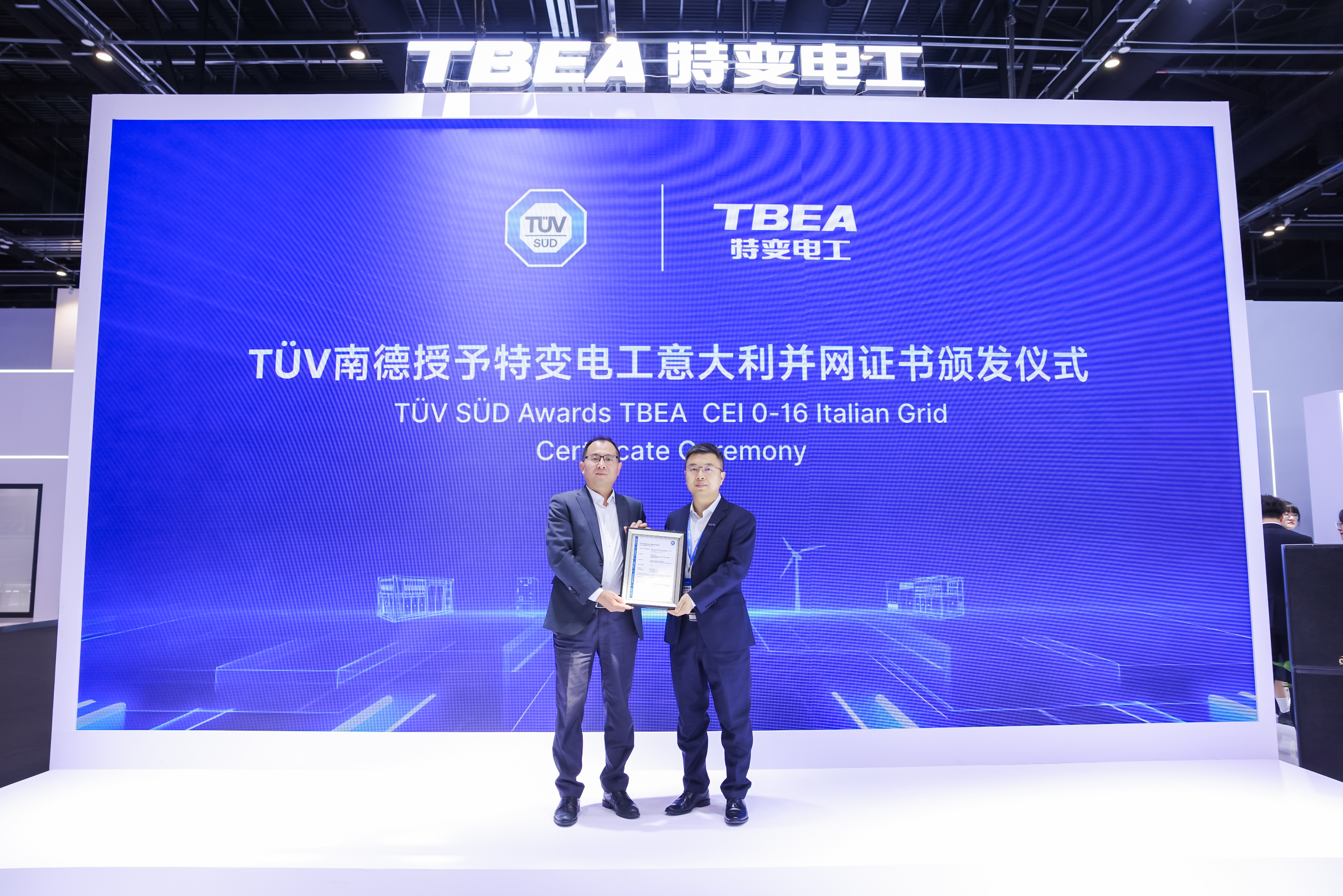 所谓储能变流器,可以通俗地理解为一个大型智能“充电宝控制器”,负责管理储能电池与电网之间的充放电。此次获得认证的特变电工产品,首先通过了意大利中高压电网接入认证。该认证由国际知名检测机构TÜV南德意志集团颁发,被誉为意大利中高压电网接入的“技术护照”。取得这一认证,意味着该产品能够安全、稳定地接入意大利各类中高压配电网,具备规模化应用能力。