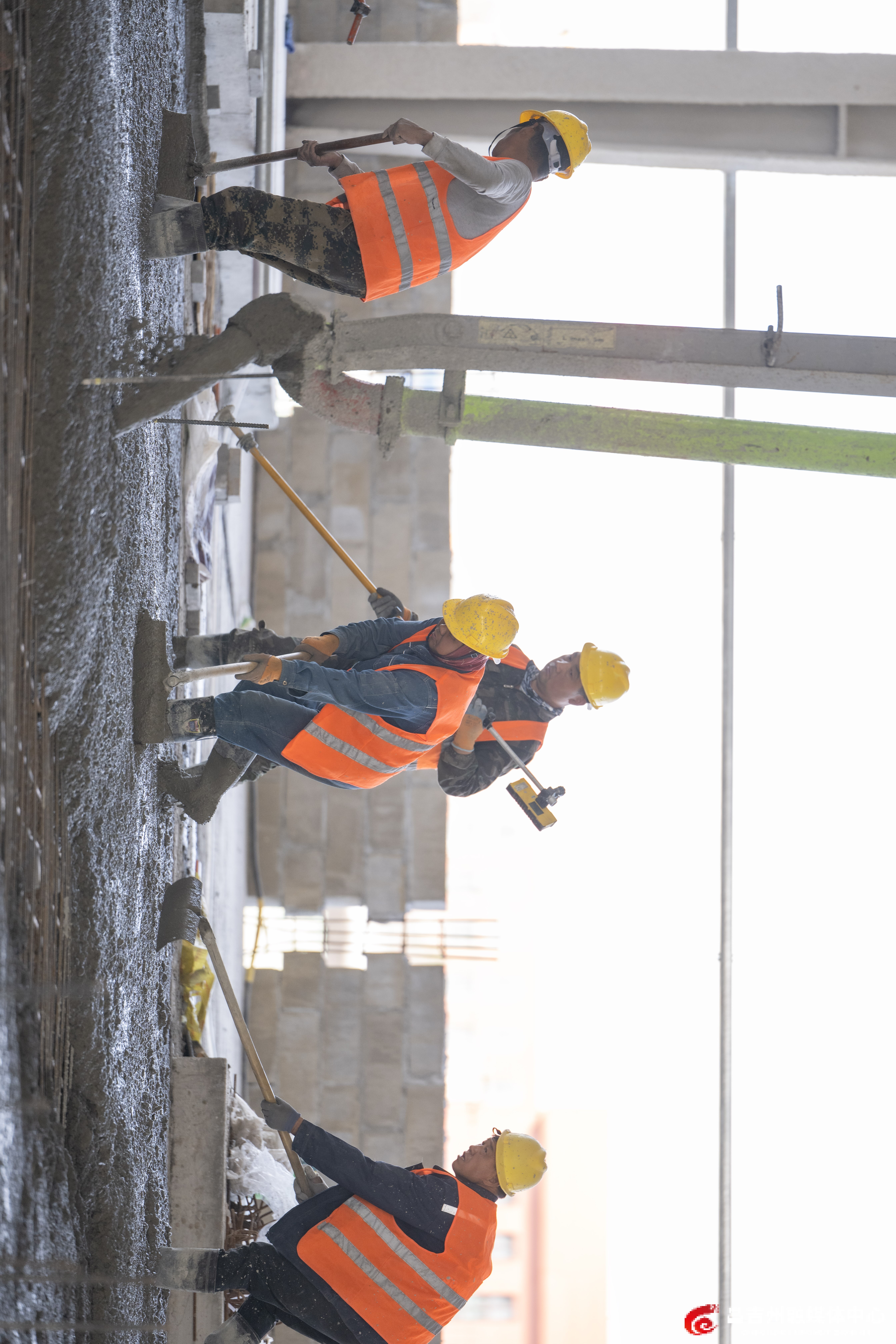 4月8日,昌吉国家农业高新技术产业示范区榆泉现代农业产业示范园区,新疆新科纺织有限公司30万锭智能纺纱项目施工现场,工人在加紧施工。