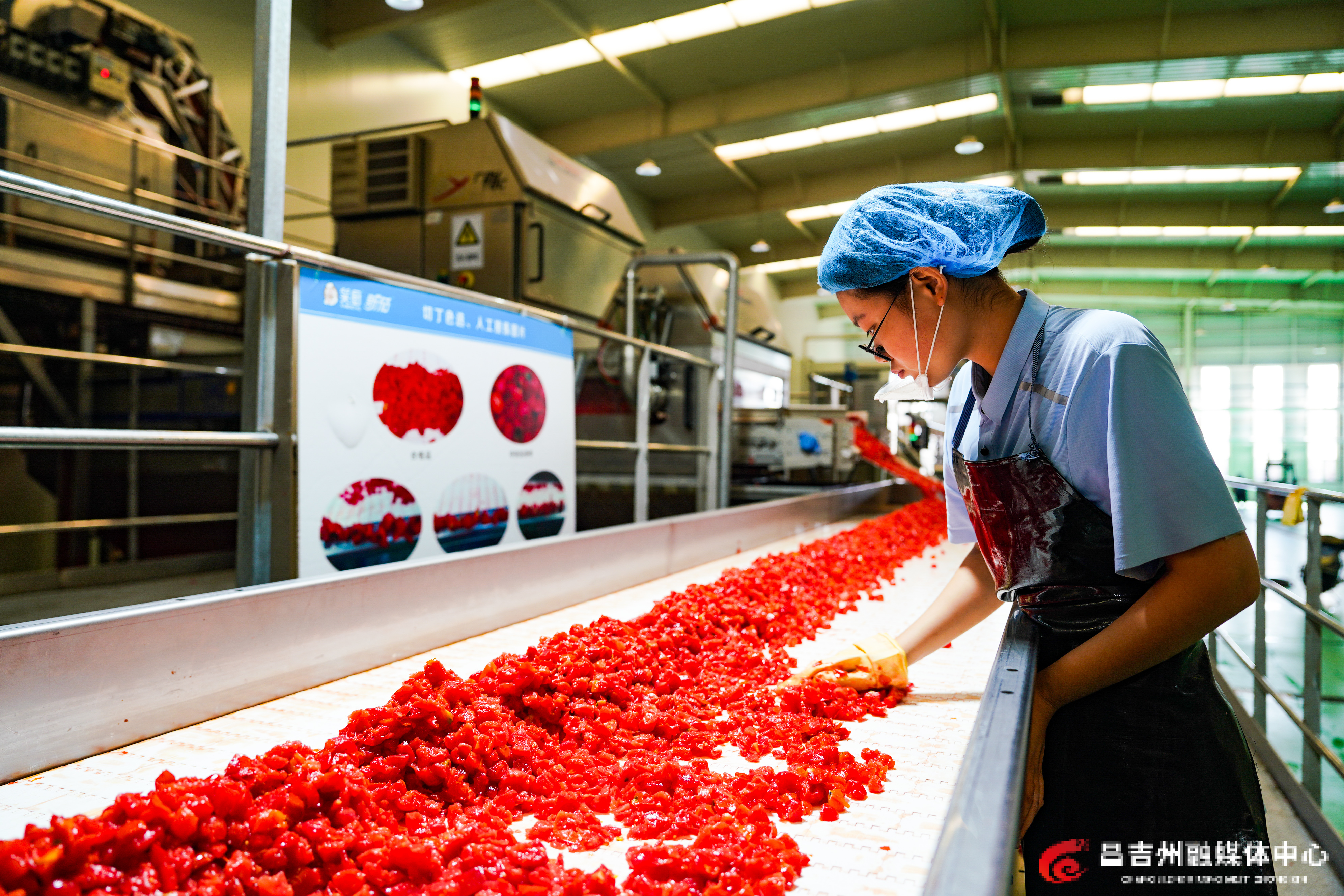 在昌吉国家农高区榆泉现代农业产业示范园区,新疆新茄食品有限责任公司生产车间内,自动化生产线高速运转,鲜红番茄经清洗、破碎、浓缩全流程自动化加工,变身优质番茄酱远销海外市场,多语种出口标识醒目亮眼,检验检疫全程溯源把关,全力护航昌吉特色农产品扬帆出海。这是昌吉国家农高区以开放拓格局、以融合促发展的生动实践。