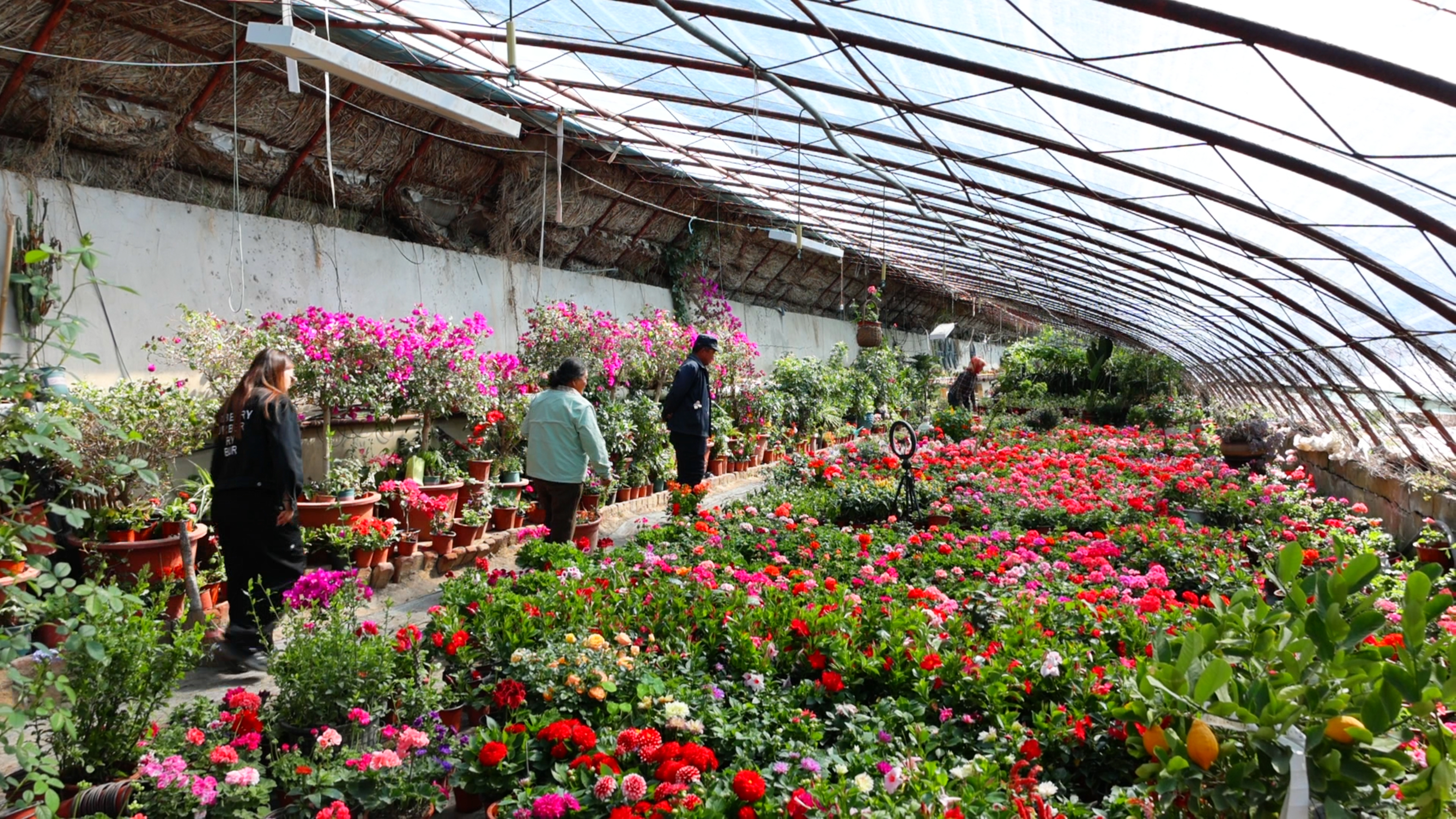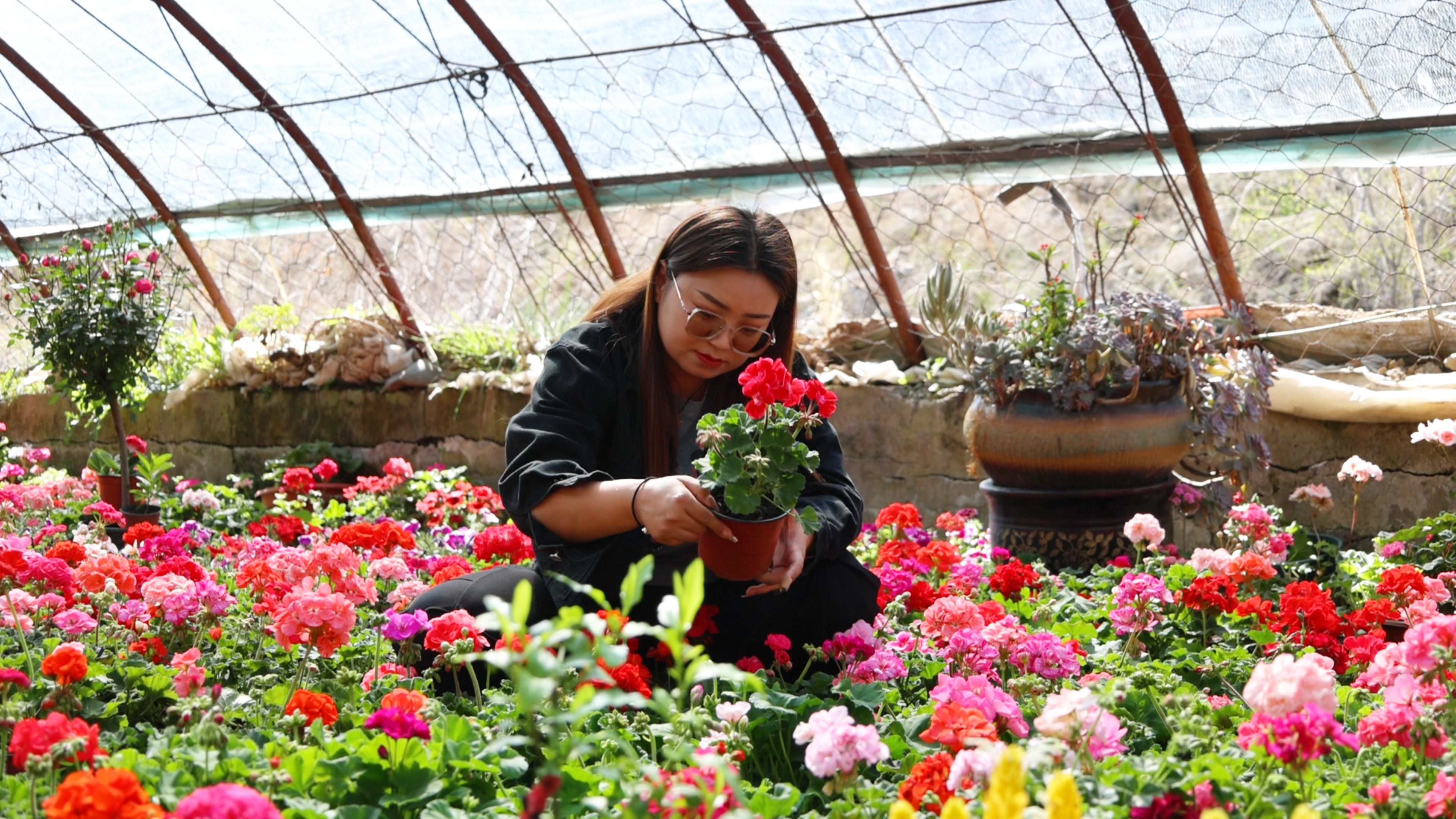 吉木萨尔:大棚花开春意浓 直播带货促增收