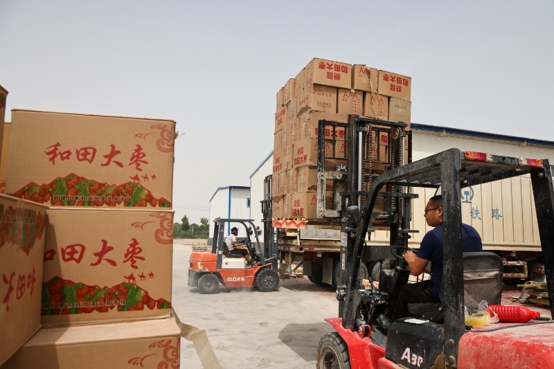 和田地区的特色农产品搭乘京疆亚货运班列运往北京市。许晓龙 摄