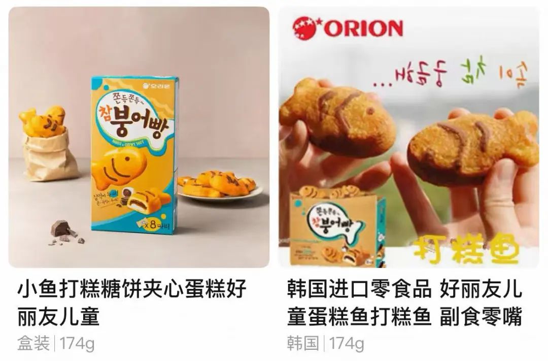 记者注意到,在多个电商平台上,目前仍能检索并购买到产自韩国的好丽友“鱼形派”,商家均非官方旗舰店。