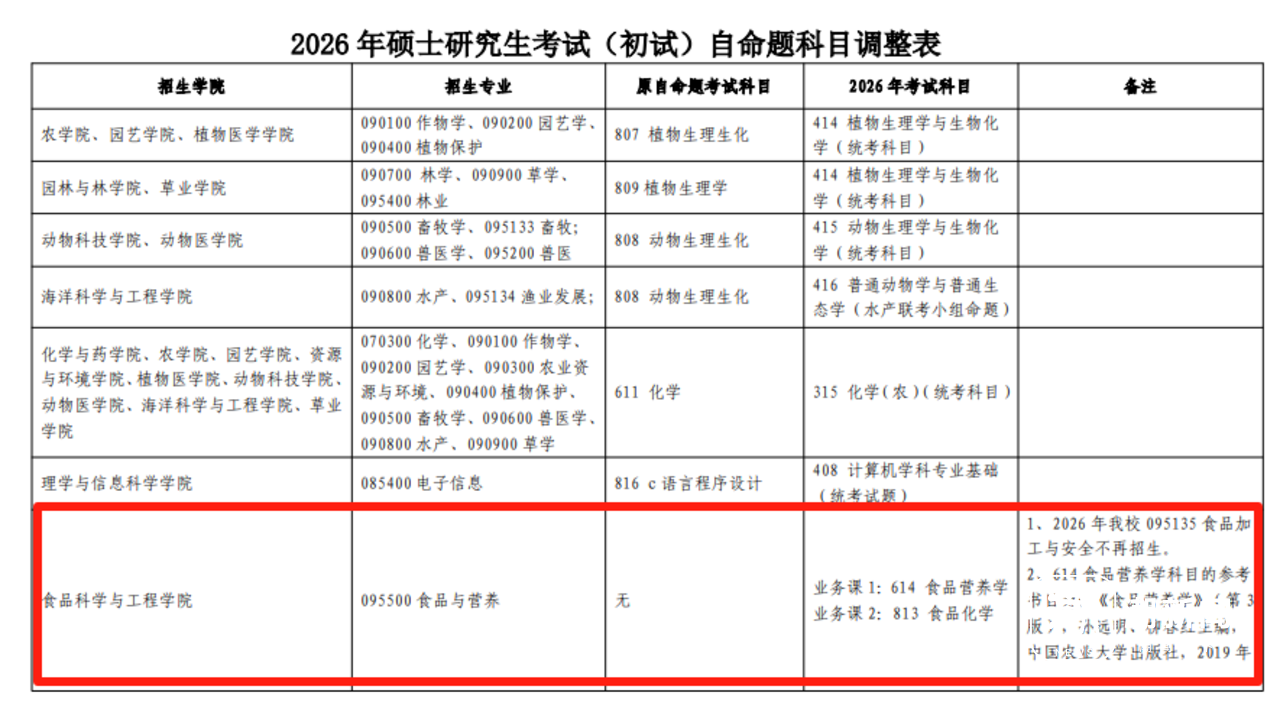 生命科学和医学学部食品科学与工程(代码0832)硕士研究生停招。
