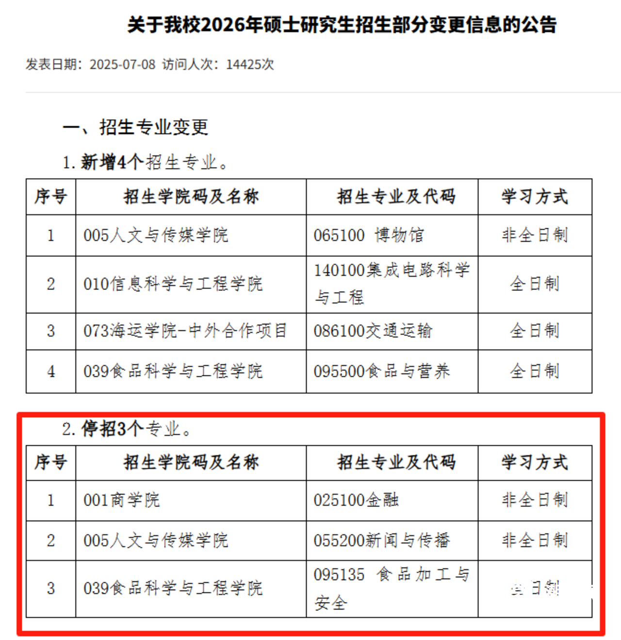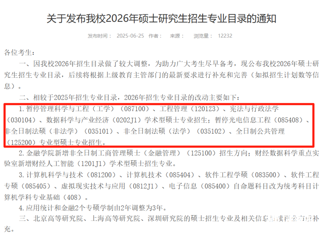 你的目标专业可能停招!事关2026考研,多所学校官宣