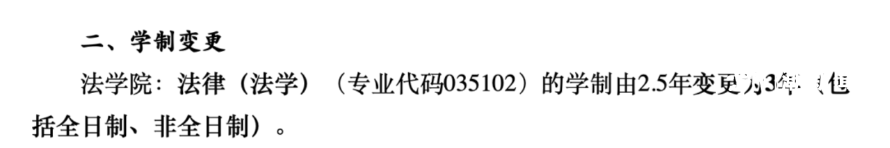 日前,宁波大学发布《关于我校2026年硕士研究生招生部分变更信息的公告》,明确法律(法学)(专业代码035102)的学制由2.5年变更为3年(包括全日制、非全日制)。