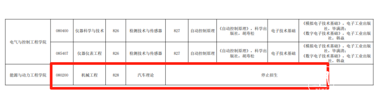 机电工程学院、化学化工学院、商学院、材料科学与工程学院停招职业技术教育(045120)硕士研究生。