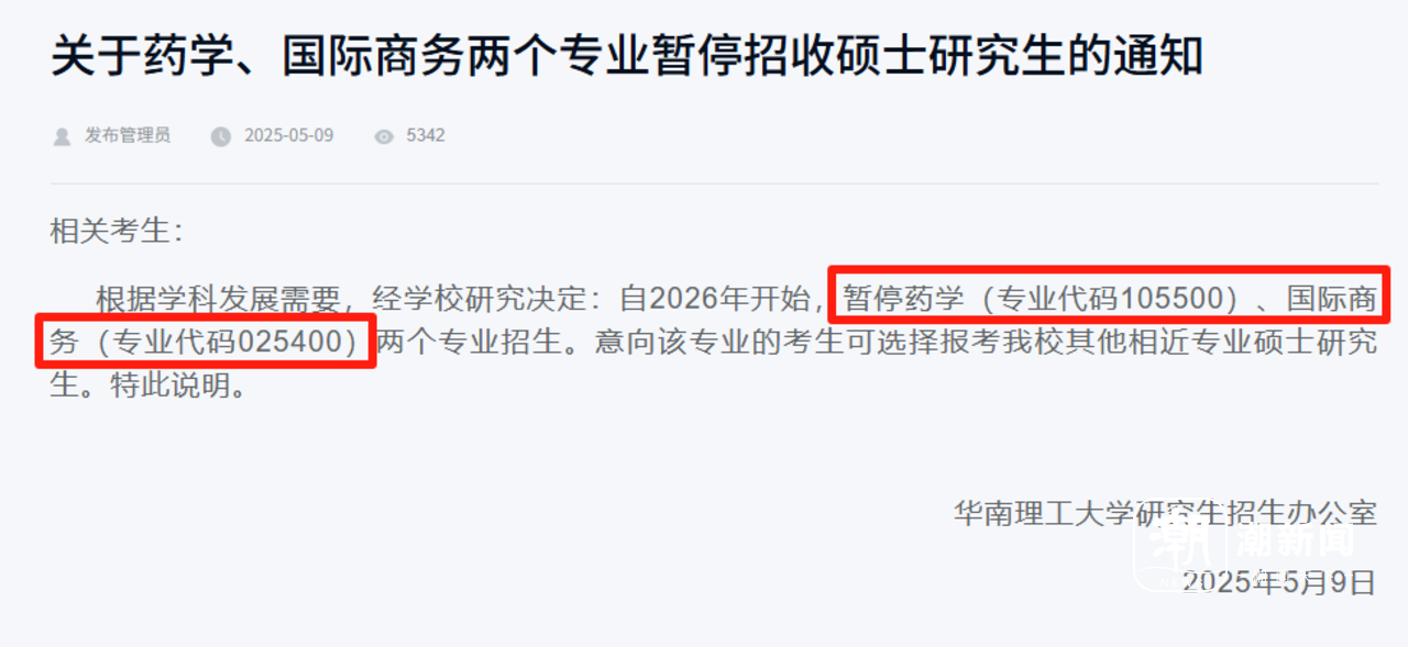 还有学校发布通知,称部分专业停止招收硕士研究生,各位考生赶紧看看有没有你的目标院校——