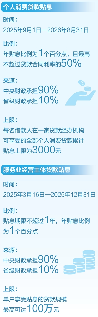 个人消费贷款、服务业经营主体贷款可享财政贴息