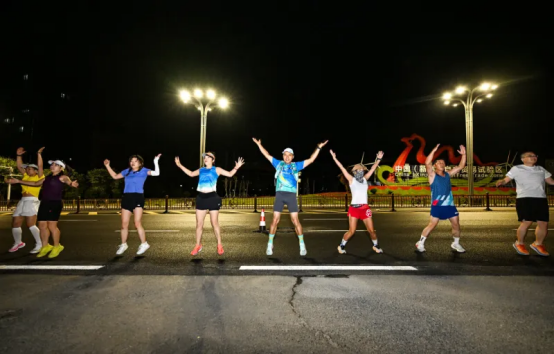 卫星路与中亚南路的交叉路口,活力同样在沸腾。新疆流行音乐协会的乐队弹唱起《奔跑》,熟悉的旋律瞬间点燃氛围;“青春元气舞团”的《冲鸭》跳出了蓬勃朝气;“欢乐经开 青春飞扬”啦啦队的呐喊声此起彼伏。这些表演不只是“加油”,更是“青春赋能经开发展”的真实写照。