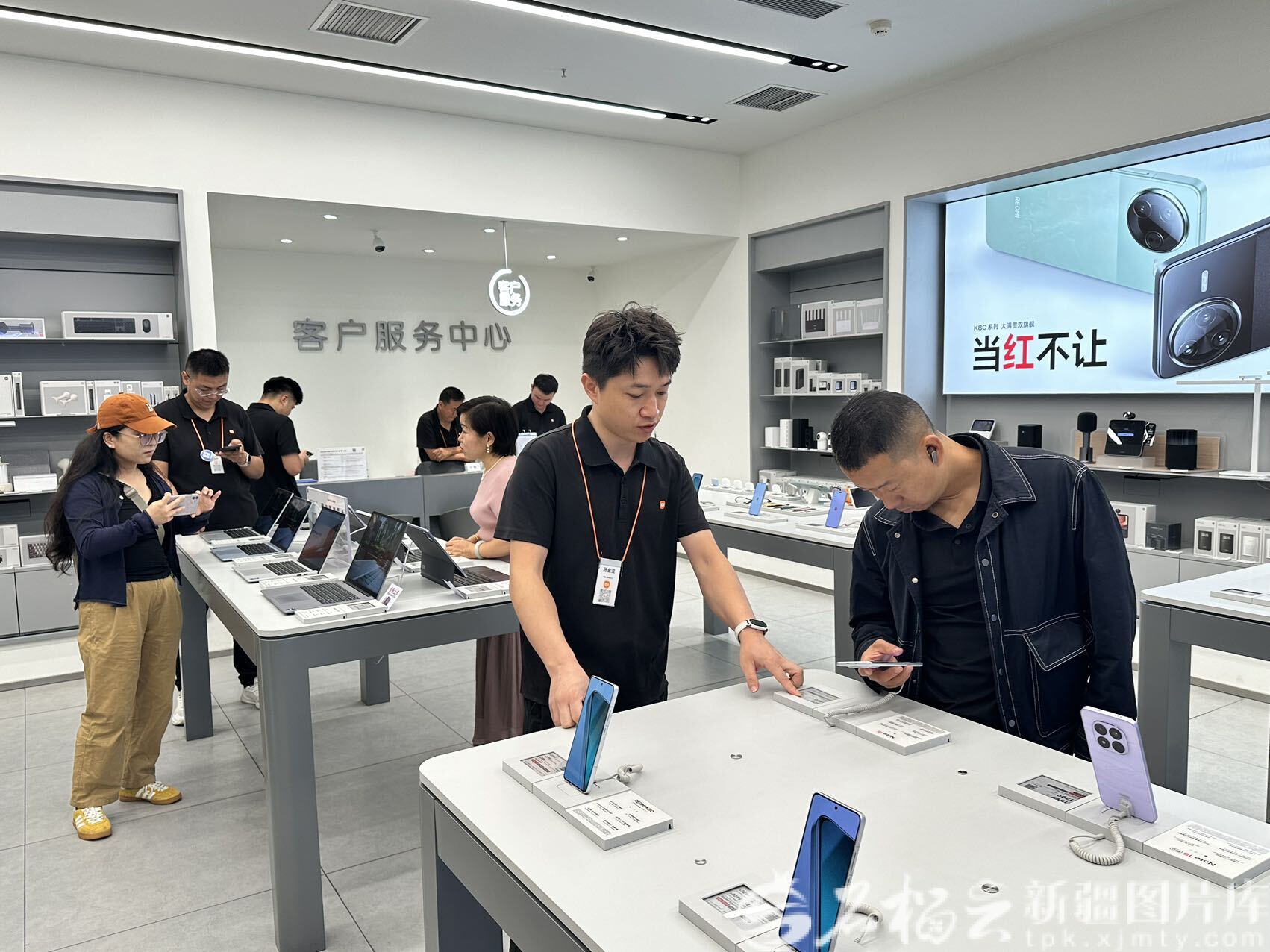 9月9日,在伊宁市万荣购物广场一家手机销售店,顾客正在挑选新款手机。孙伍健摄