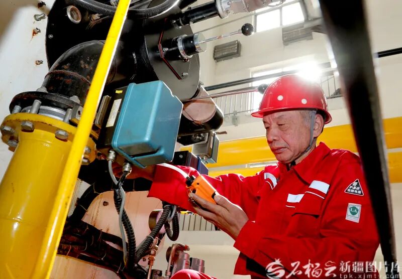 10月9日,乌鲁木齐热力(集团)有限公司第七热力公司工作人员对供暖设备进行检测。石榴云/新疆日报记者 韩亮摄