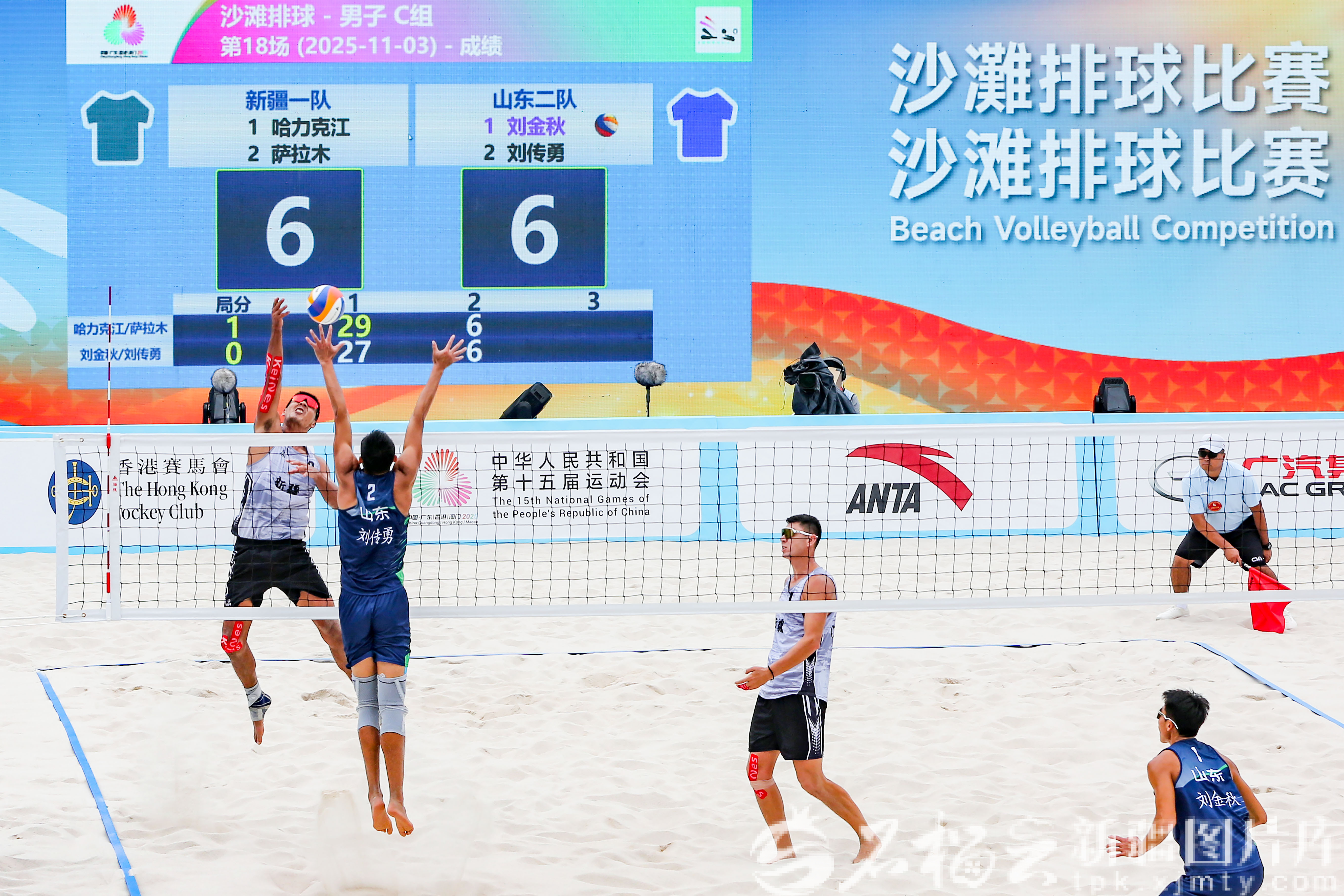 十五运会,沙滩排球男子C组新疆组合2比0胜山东队