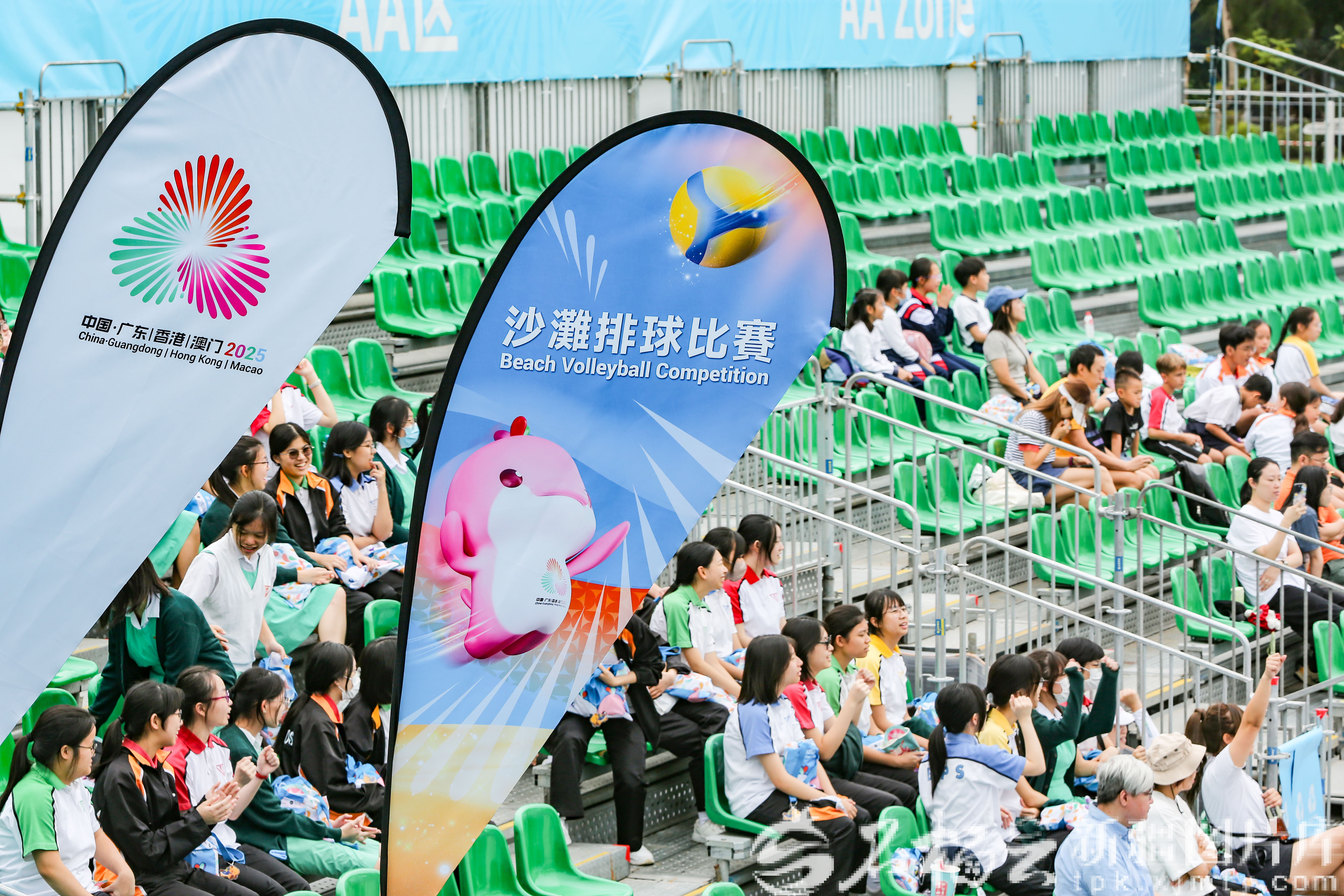11月3日,观众在第十五届全国运动会沙滩排球比赛现场观看比赛。