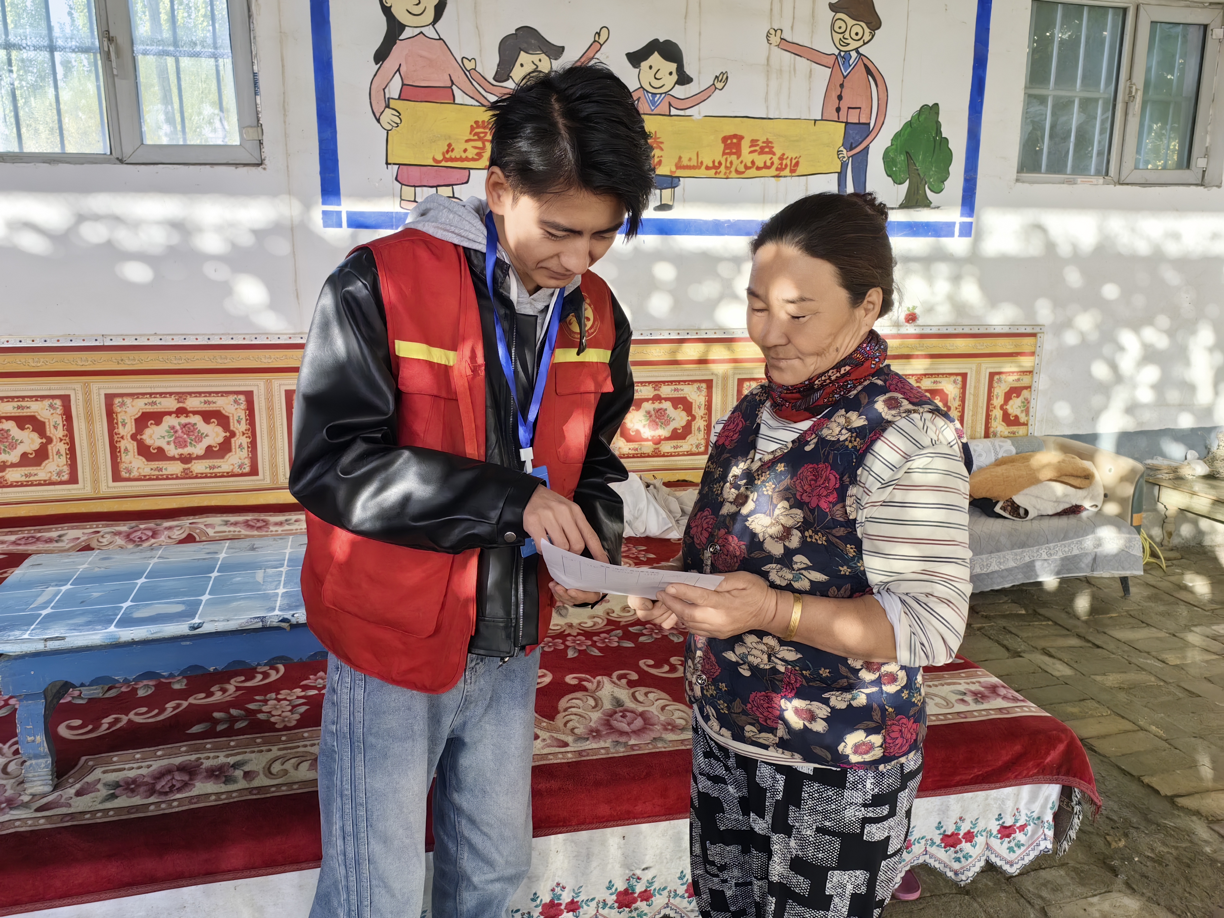 11月1日,调查指导员佩戴统一标识,携带采集设备,分组进入社区居民家中,耐心讲解调查内容,细致开展信息登记。博乐市调查指导员刘玉琴在入户时说:“您好,我是1%人口抽样调查员。您家被抽中参与本次调查,需要登记一些信息……此次调查将掌握人口数量、结构分布变化,数据背后连着千家万户幸福指数,希望居民知晓并配合调查人员工作,确保数据采集高效精准推进。”