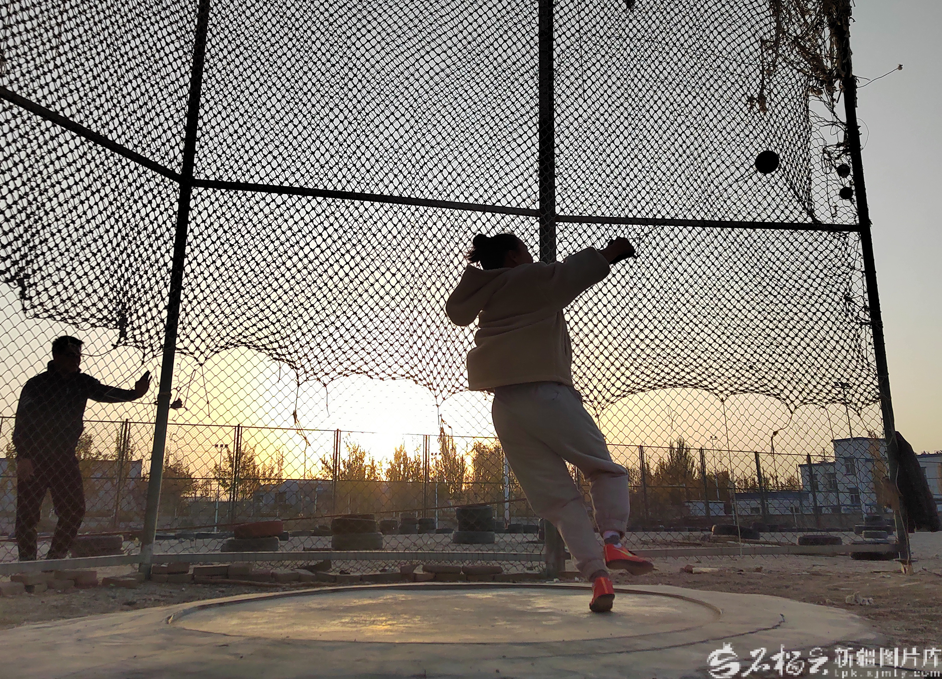 10月30日清晨,投掷队队员在训练基地进行链球训练。