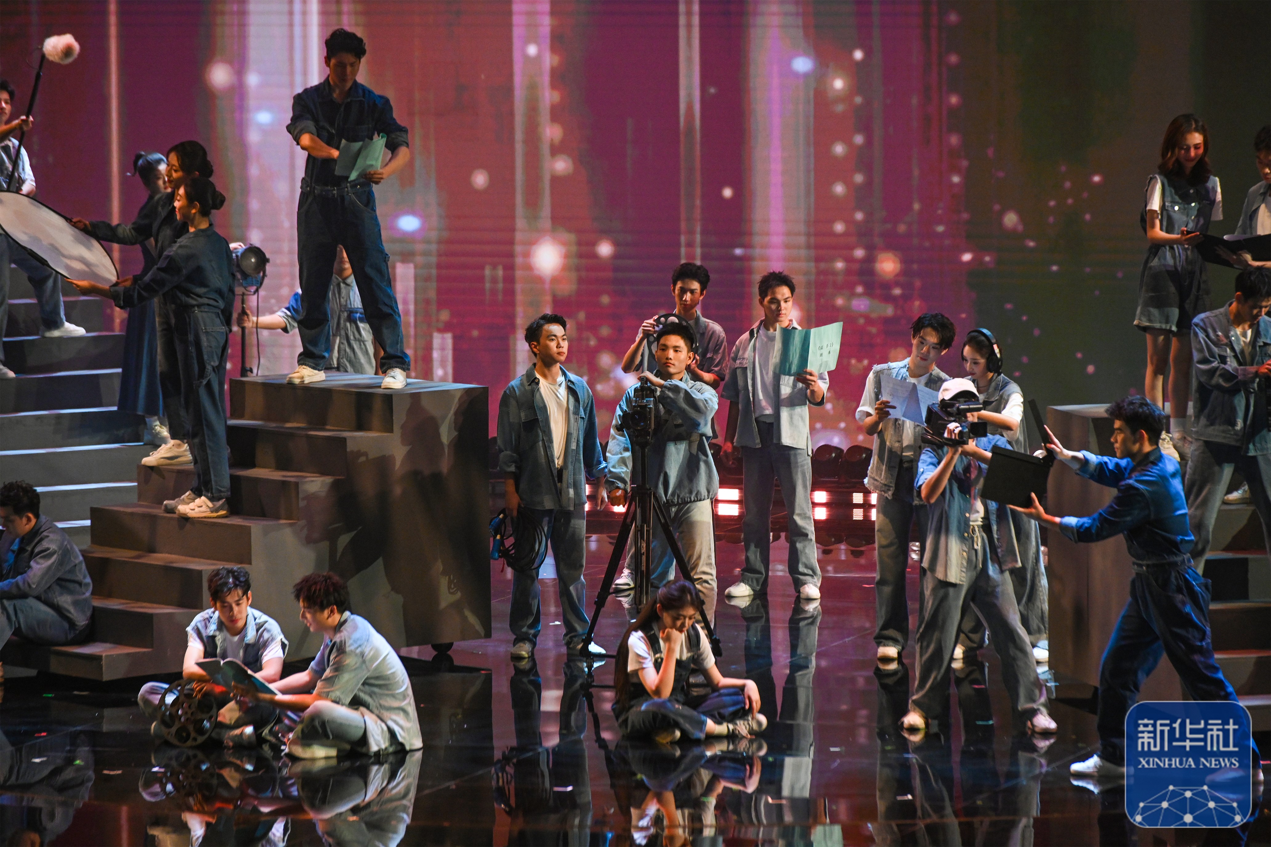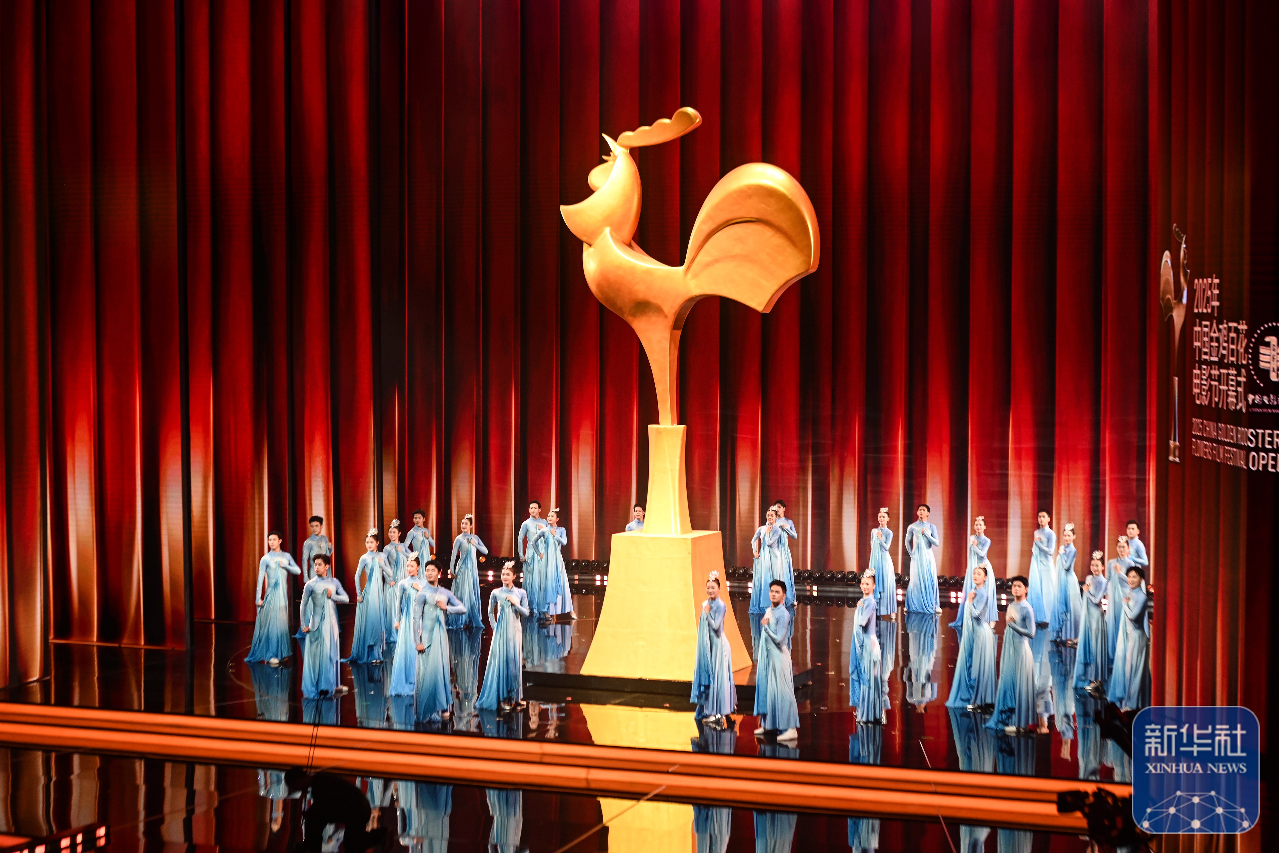 ↑ 11月11日晚拍摄的2025年中国金鸡百花电影节开幕式现场。