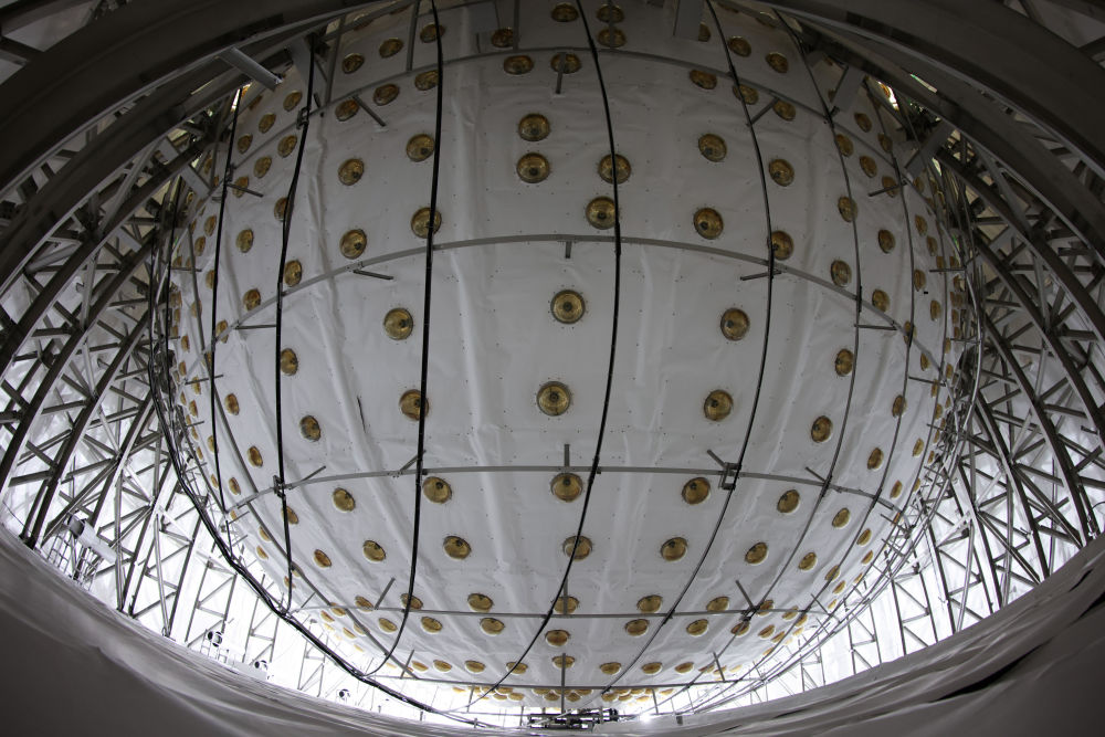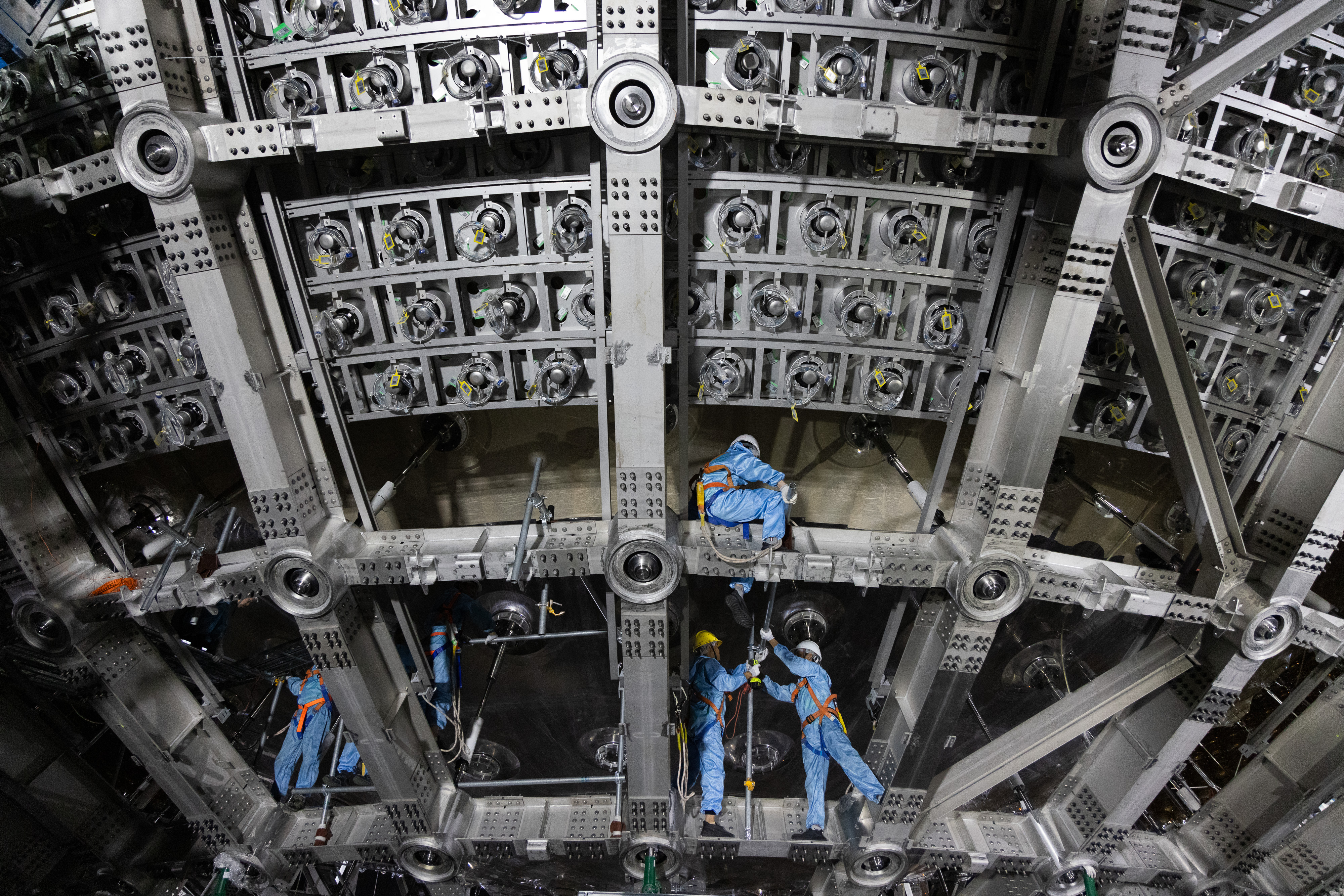 从江门中微子实验球底拍摄的中心探测器有机玻璃球(2024年11月22日摄)。新华社记者 金立旺 摄