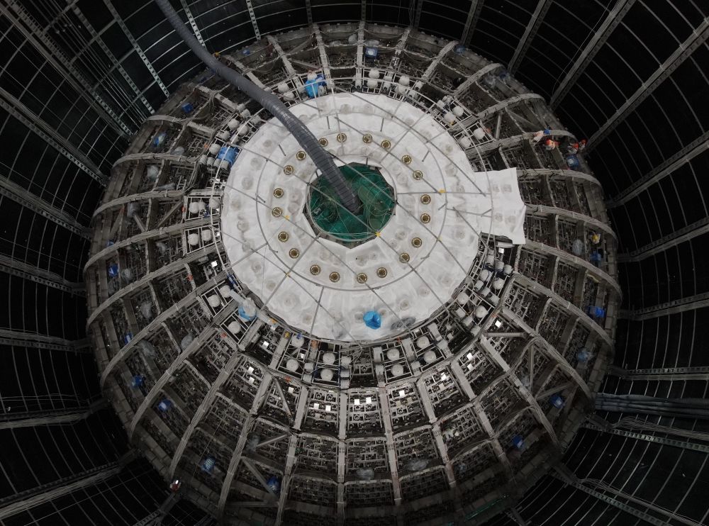 建设中的江门中微子实验中心探测器(2023年6月14日摄,无人机照片)。 新华社记者 邓华 摄