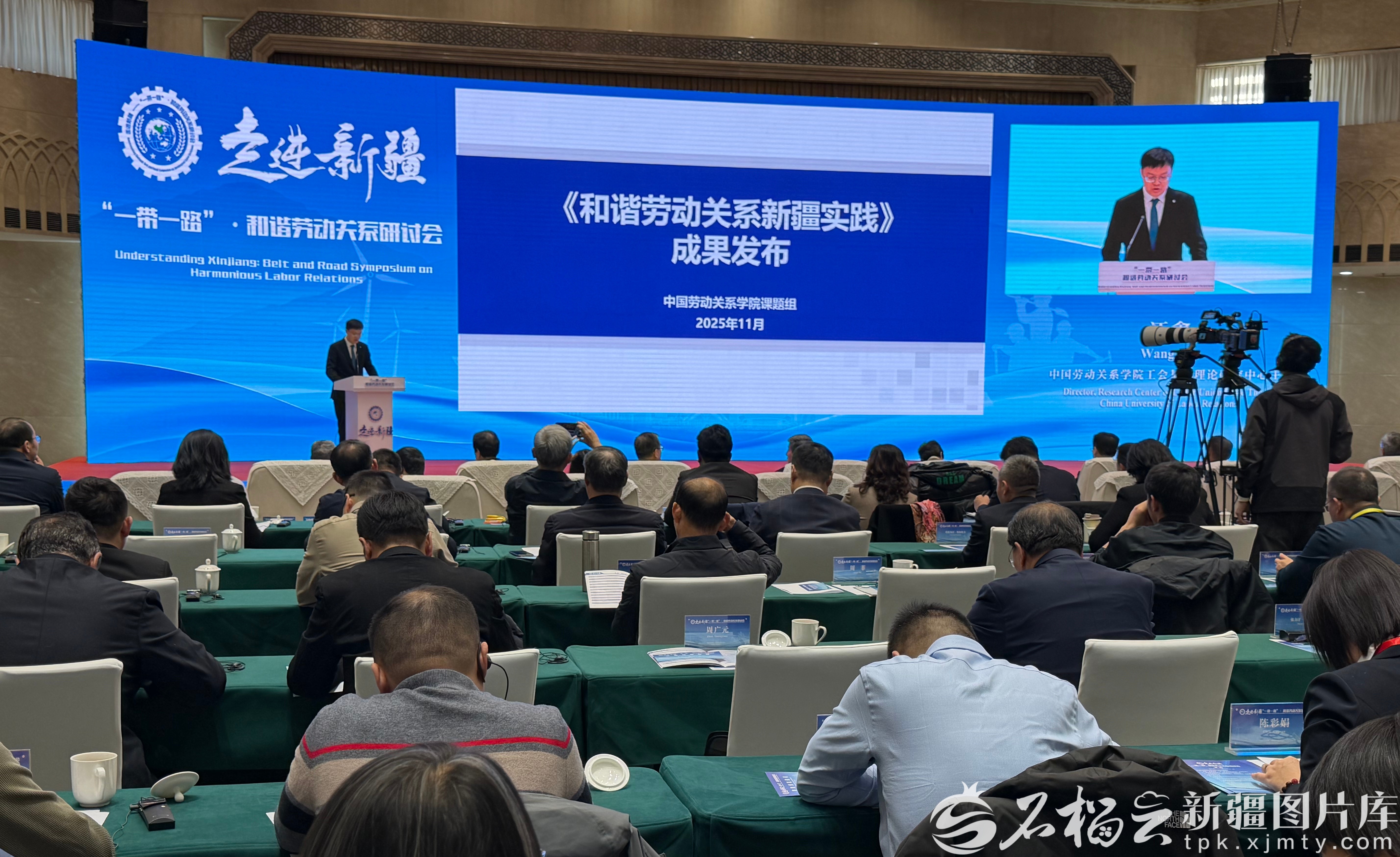 11月18日、19日,走进新疆“一带一路”和谐劳动关系研讨会在乌鲁木齐召开,会上发布了《和谐劳动关系新疆实践》成果。李双行 摄