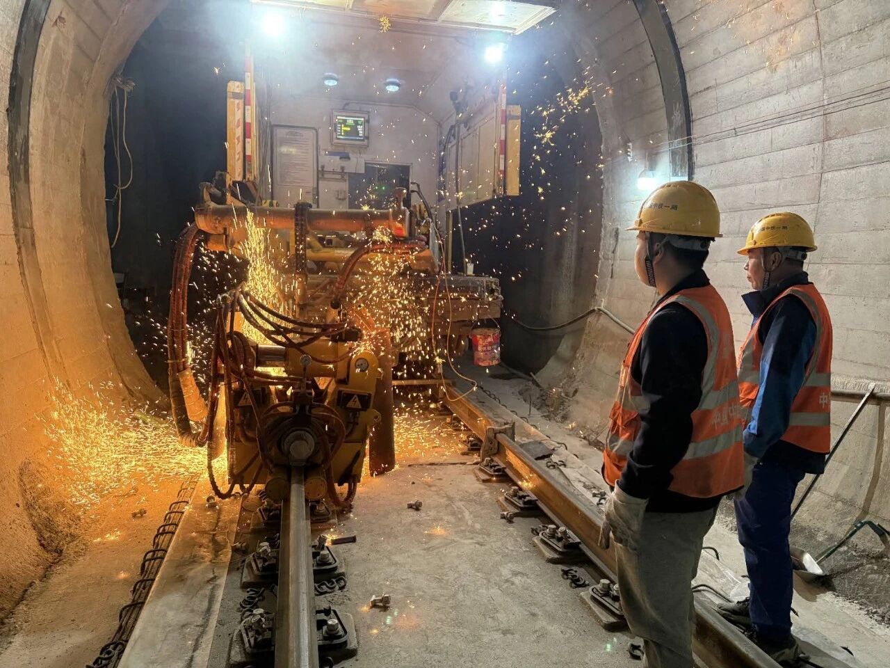 “长轨通”是地铁建设工程的一项重要节点,是指在完成短钢轨铺设后,将一段段短钢轨通过无缝焊接连接起来,形成一条完整的长轨,使线路具备跑车调试条件。