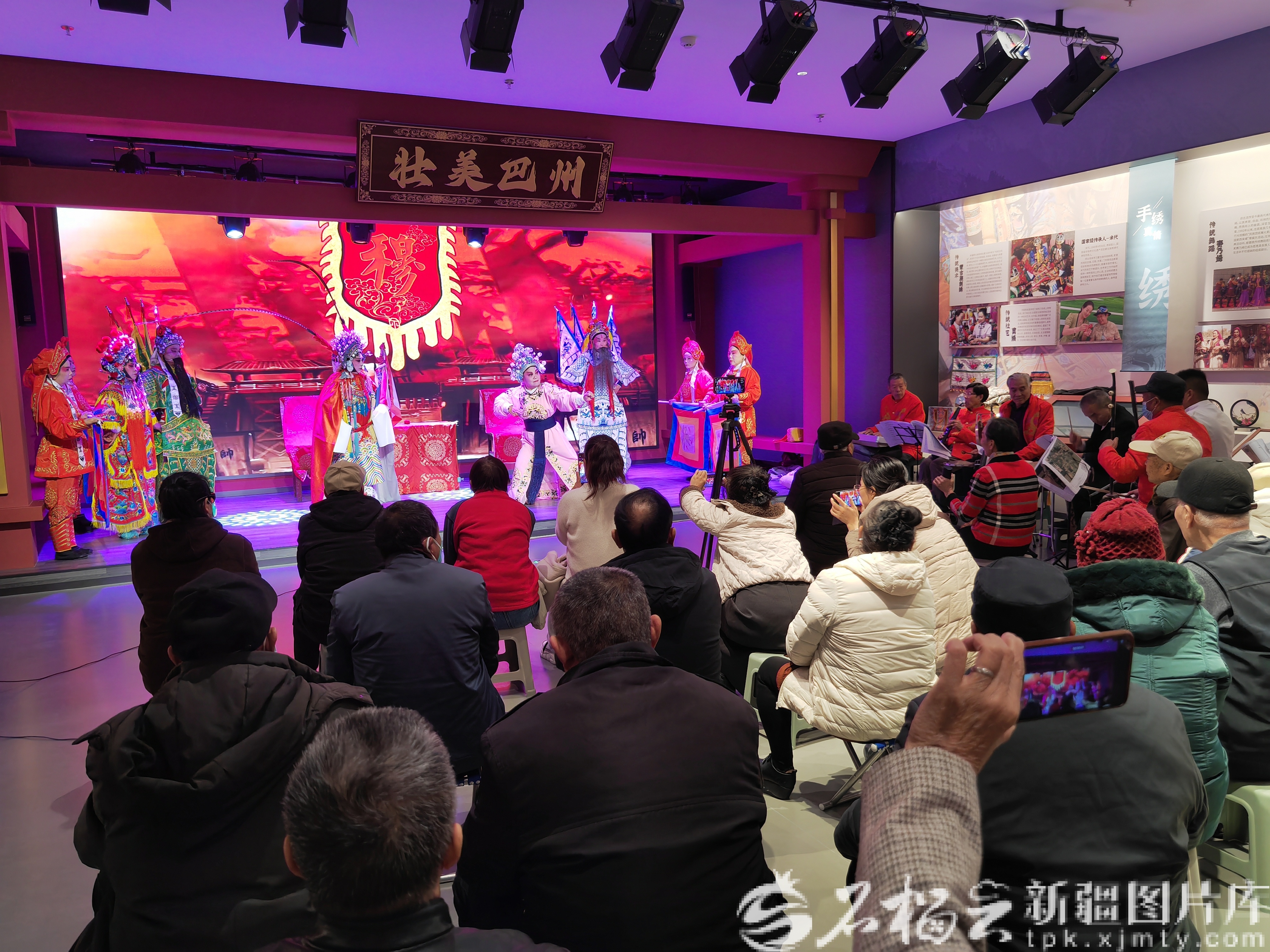 11月30日,群众在巴州铸牢中华民族共同体意识主题展馆观看豫剧表演。黄万里 摄