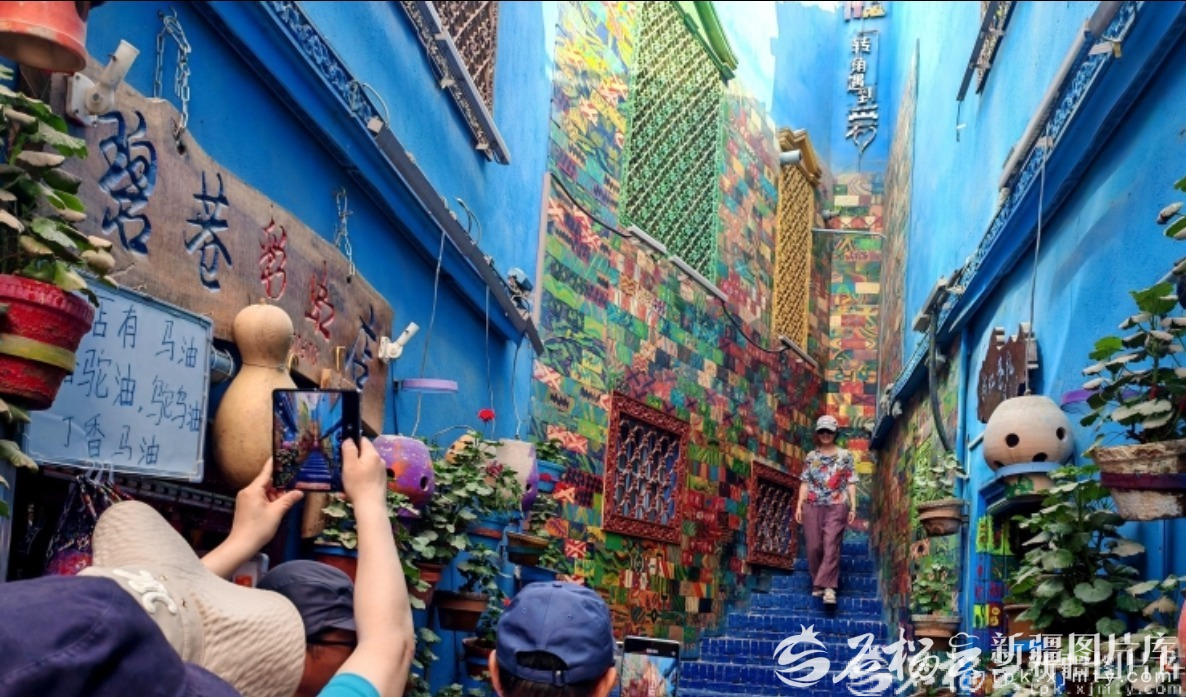 5月25日,游客在喀什古城玫瑰花巷打卡(资料图)。张宇航摄