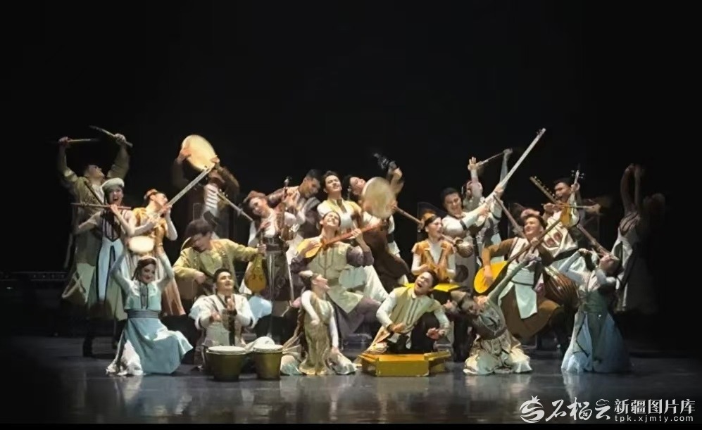 由新疆维吾尔自治区文化和旅游厅推荐、乌鲁木齐市艺术剧院创演的群舞《时间的声音》,凭借“以舞为笔、以乐为韵”的艺术语言,将木卡姆文化的传承故事娓娓道来。作品以著名画家哈孜・艾买提的经典油画《木卡姆》为蓝本,突破静态艺术的边界,将画作中的文化意境转化为动态的舞台叙事。