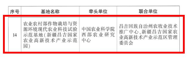 祝贺!昌吉一企业入选全国首批现代农业科技试验示范基地
