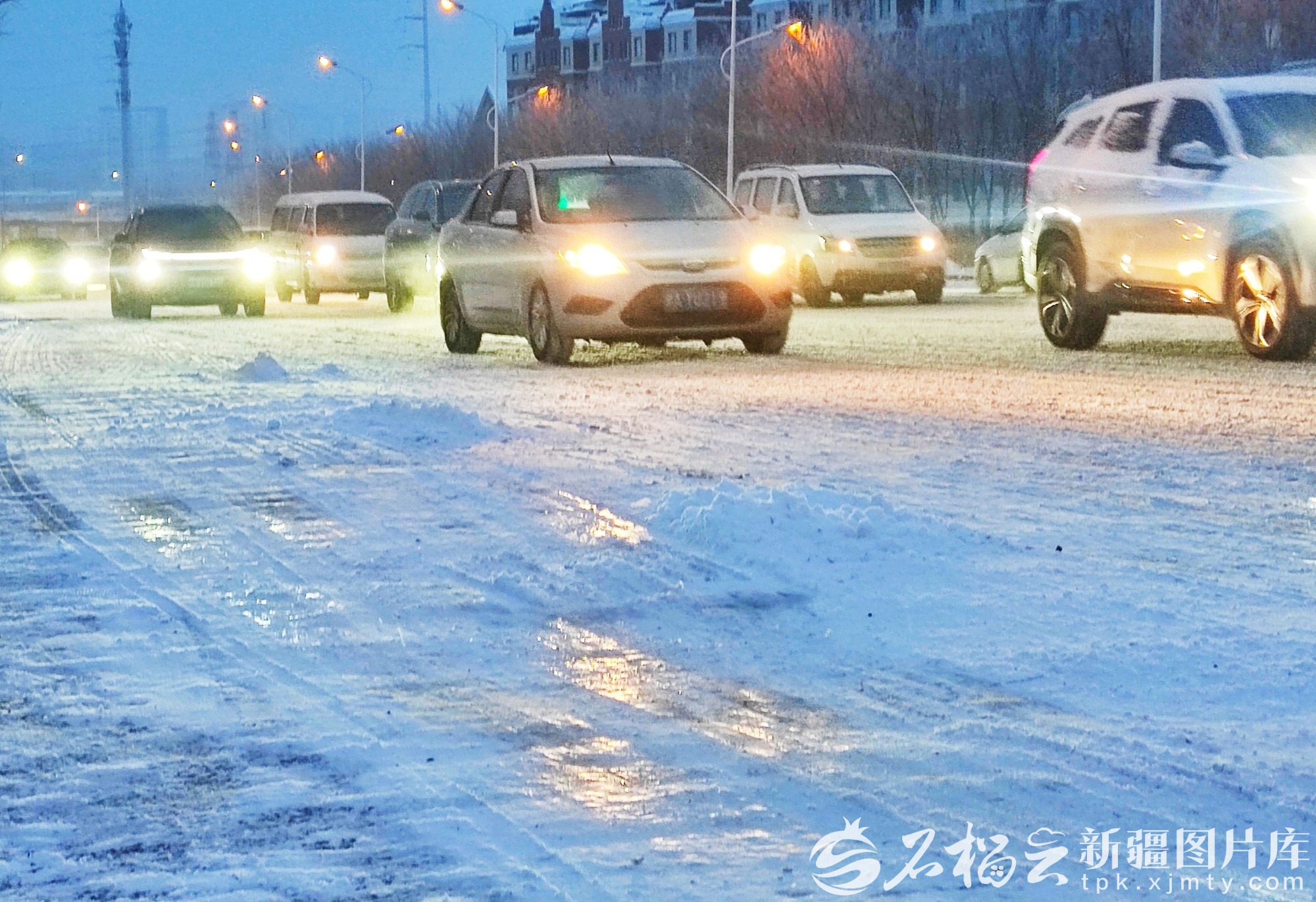 9日早晨,乌鲁木齐市沙依巴克区格林威治城公交车站附近路况。石榴云/新疆日报记者 张万德摄