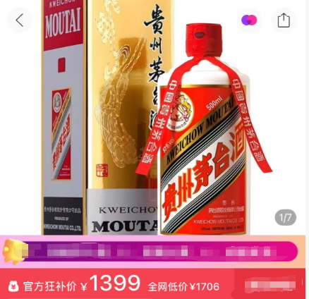 作为参考,该产品出厂价为1169元/瓶,官方市场指导价为1499元/瓶。记者在多家电商平台查询发现,目前散瓶飞天茅台通过拼团、补贴等促销方式,最低到手价仅1399元/瓶,较官方指导价低100元,正式击穿指导价防线。