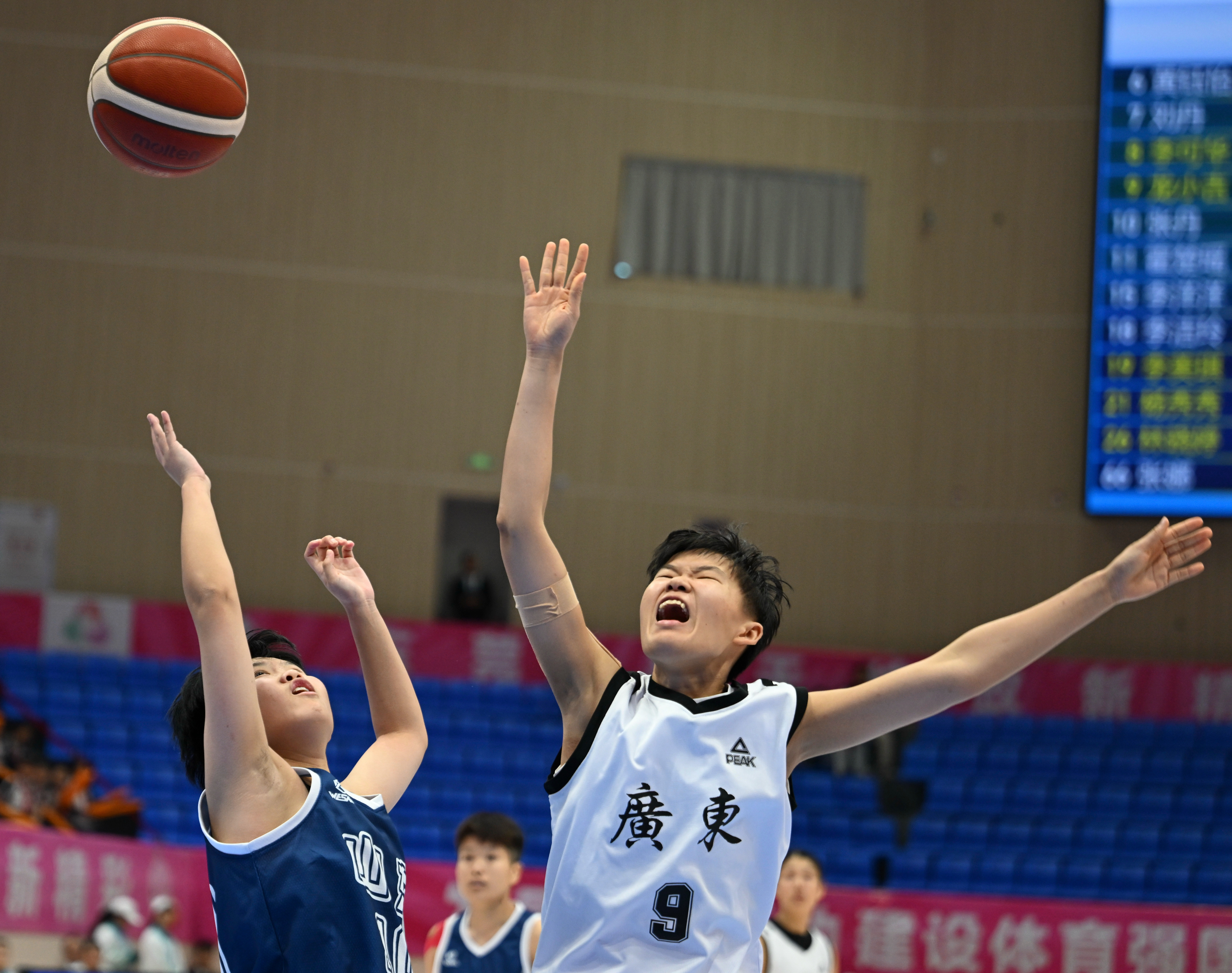12月9日,广东一团队球员龙小吉(右)在比赛中。新华社记者 肖恩楠 摄