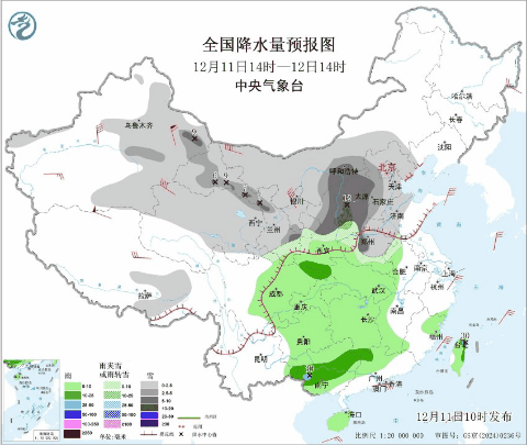 全国降水量预报图、全国大风预报图。图/中央气象台
