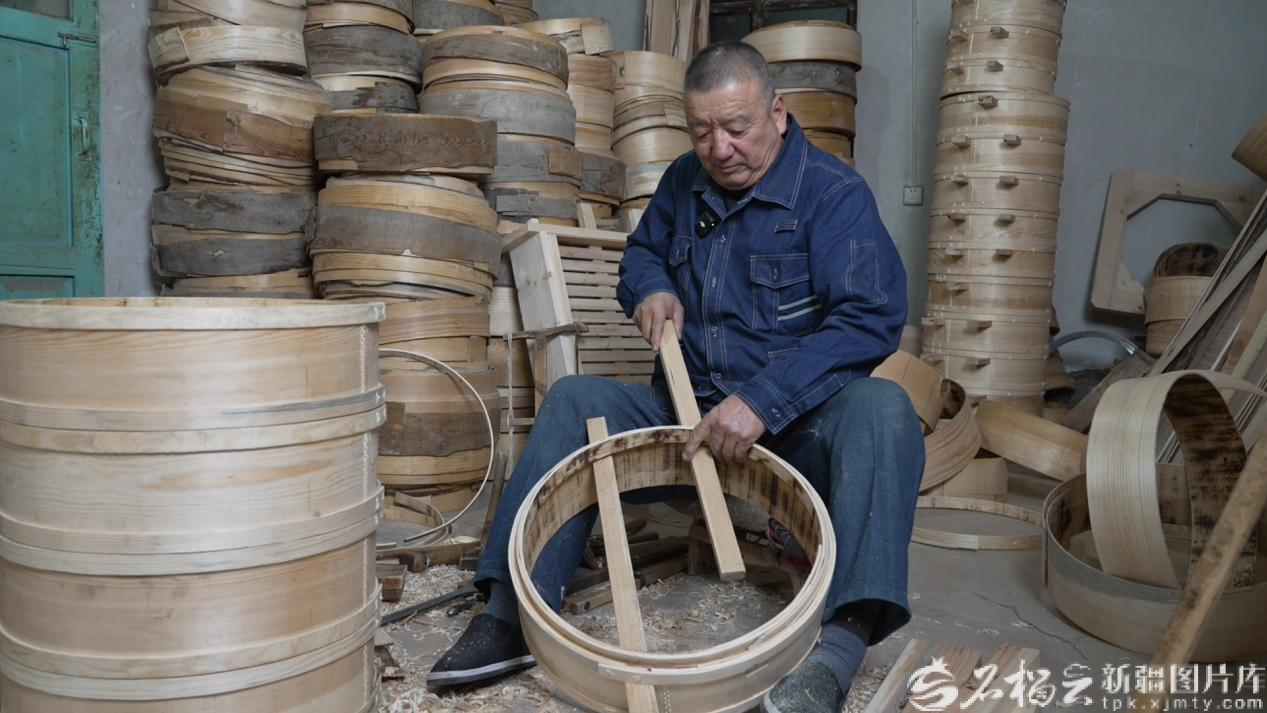 12月10日,走进奇台县奇台镇西大街一条弯曲悠长的巷子,在一处院落里,淡淡的松木香扑面而来。昌吉回族自治州非物质文化遗产木蒸笼制作技艺代表性传承人贺天海,正弓着身子压制木蒸笼的外圈。这块前一晚就被闷湿压弯的木板,在他手中柔韧有度。