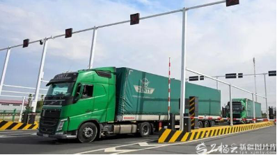 来自俄罗斯的货车从位于新疆塔城地区的巴克图口岸海关集中查验场地出关。塔城地区融媒体中心供图