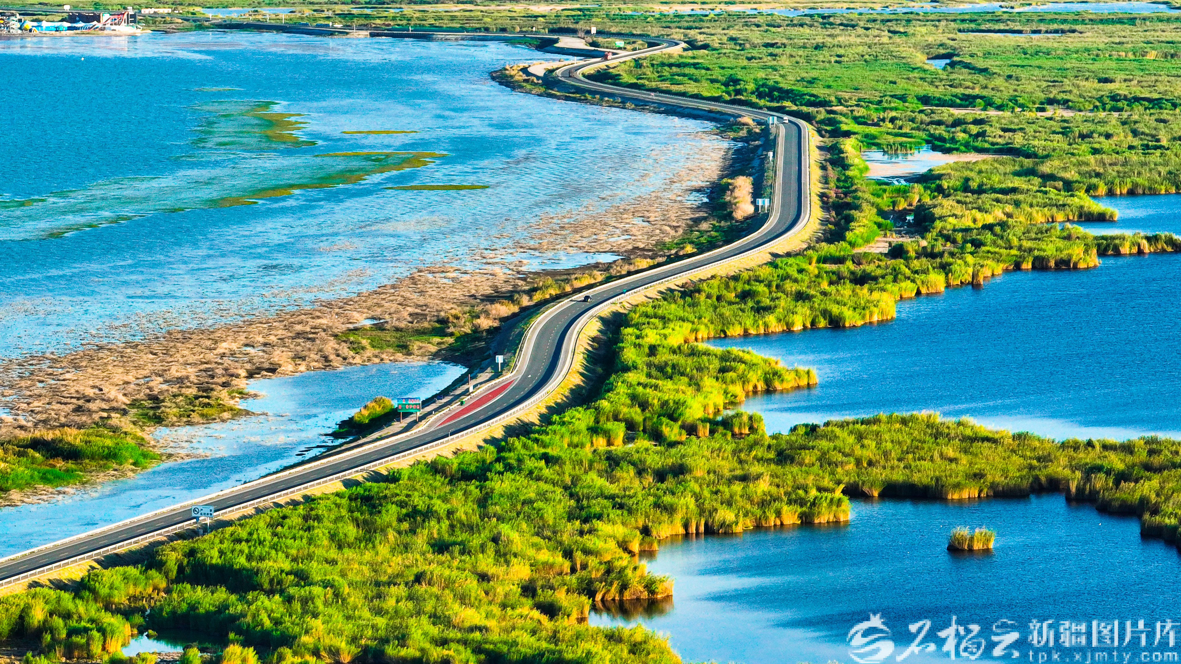 驾车行驶在“一侧湖水一侧沙”的博湖县博斯腾湖环湖公路上,沿途可欣赏清澈湖水、沙漠戈壁、湿地芦苇和候鸟翔集的美丽画卷。公路串联起大河口、莲海世界、白鹭洲、海心山、月牙湾、金沙滩等景点,形成了一条集生态观光、人文体验和休闲度假于一体的旅游长廊,大大提升了当地旅游的整体竞争力。