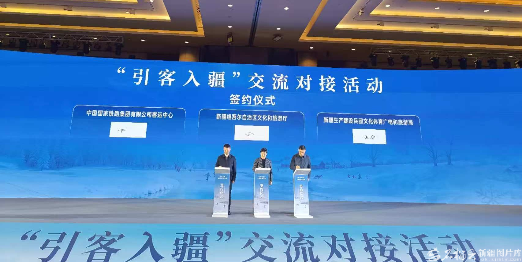 活动上,中国国家铁路集团有限公司和自治区文旅厅、兵团文化体育广电和旅游局签署《关于2026年深化“引客入疆”旅游专列合作意向书》。三方将共同推动2026年全年开行“引客入疆”旅游专列不少于200列,进一步提升“坐着火车游新疆”品牌影响力,助力新疆2026年旅游接待人次与收入稳步增长。中国旅游集团旅行服务有限公司、中国铁道旅行社集团有限公司、携程集团、同程旅行集团等国内知名旅游企业分别与新疆各地文旅部门、旅游企业等签署合作协议,共同推动“引客入疆”。