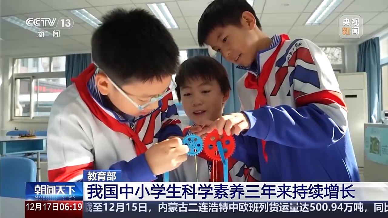 教育部相关负责人介绍,对全国中小学生科学素养的调查结果显示,2025年,各年级中小学生科学素养平均得分,相比2024年增长4.5%,相比2023年增长6.3%。近三年,我国中小学生科学素养呈阶梯式稳步提升。