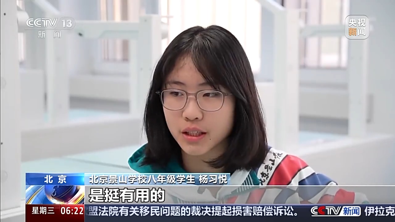 北京景山学校八年级学生 杨习悦:它会提示一些平时做实验不会注意到的要点,可以帮我们规范实验的动作,是挺有用的。