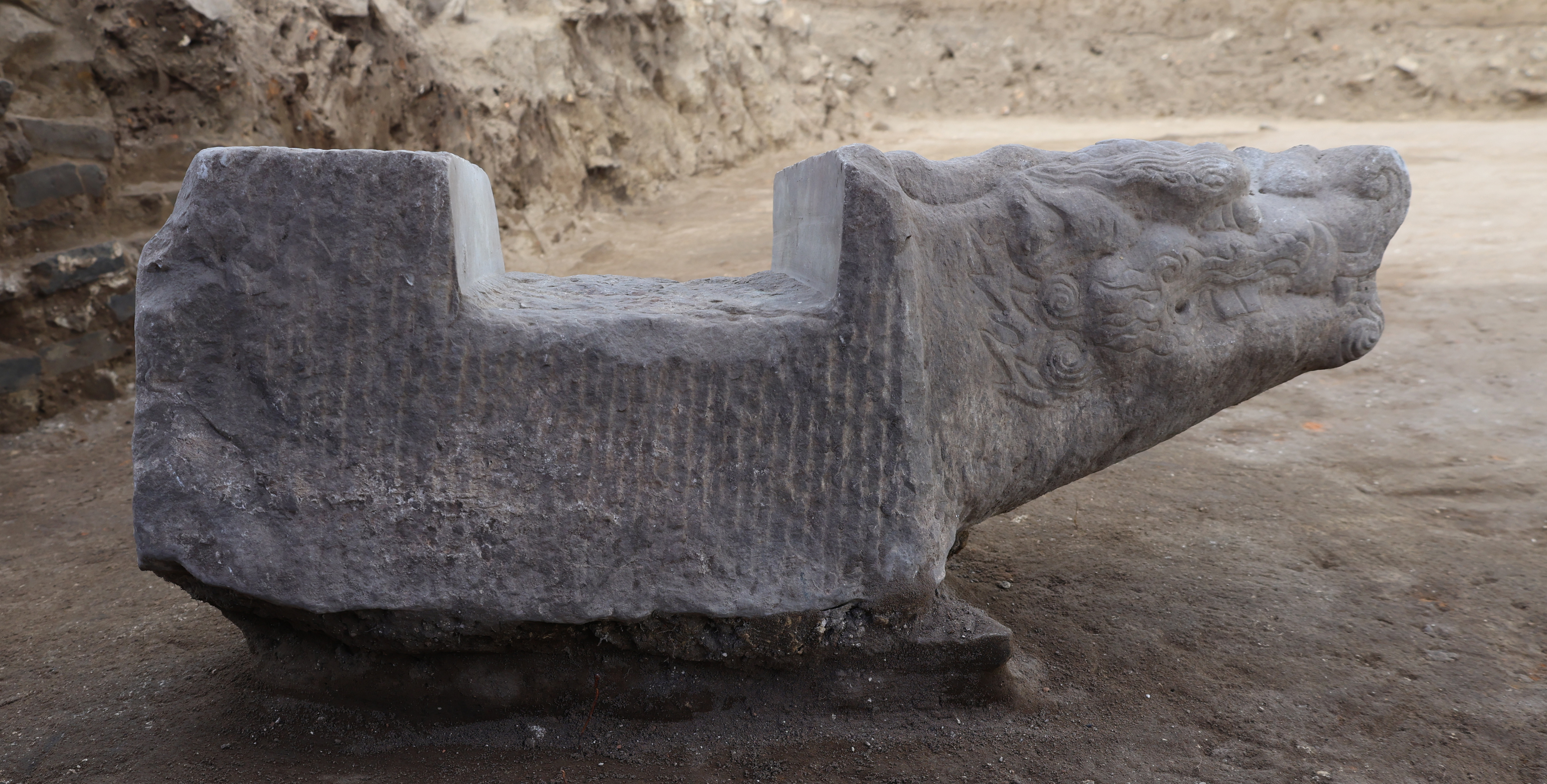 图为发掘出土的石螭首。新华社发