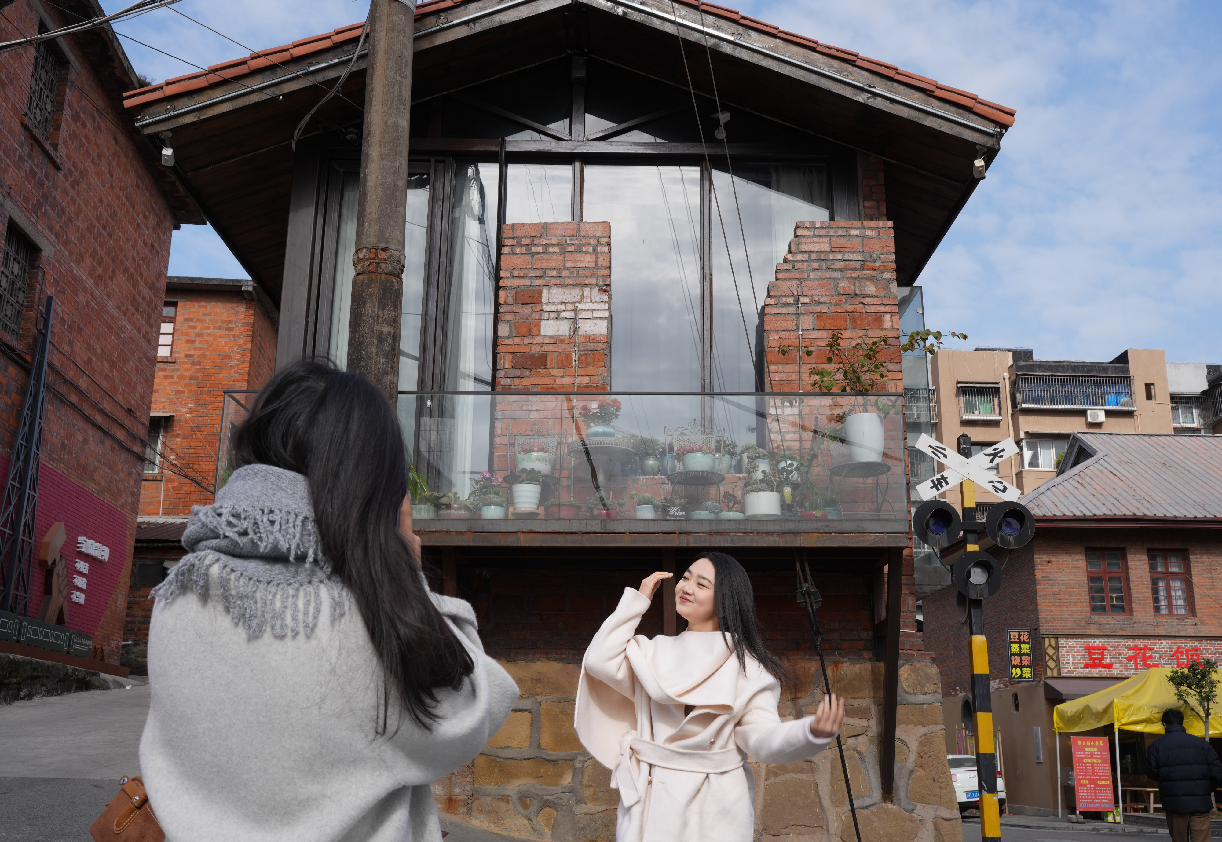 ⬆️12月12日,游客们在“南站记忆”主题街区打卡拍照。