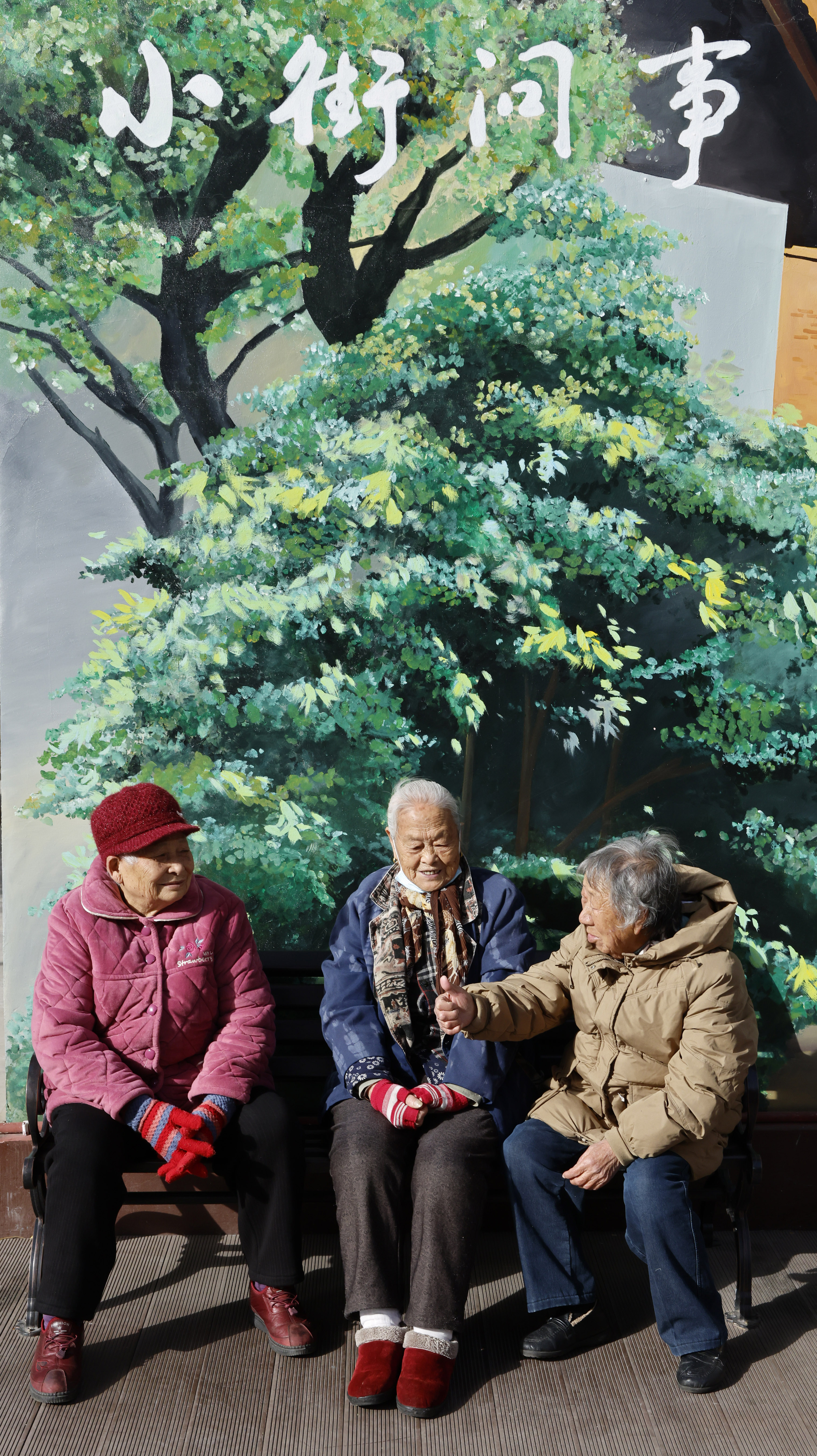 ⬆️12月13日,社区居民在“小街问事”广场上议事。