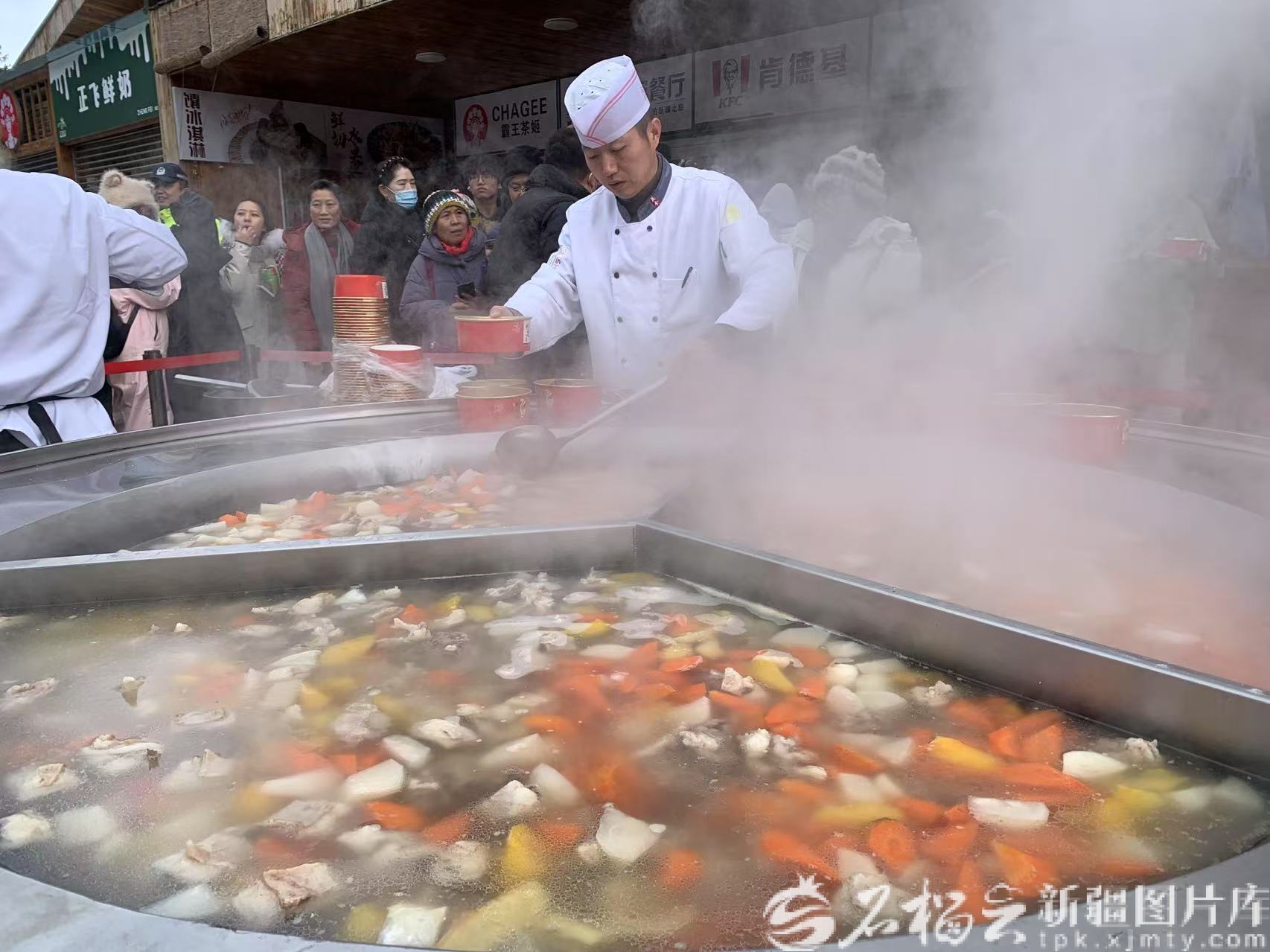当日,第十二届西域旅游天山天池景区“大锅羊肉节”启动。12年来,该景区在冬至前后都炖煮当地新鲜羊肉供游客品尝。如今,这已成为该景区冬季旅游的固定节目和金字招牌,吸引着远近游客前来品尝滚烫的美食。