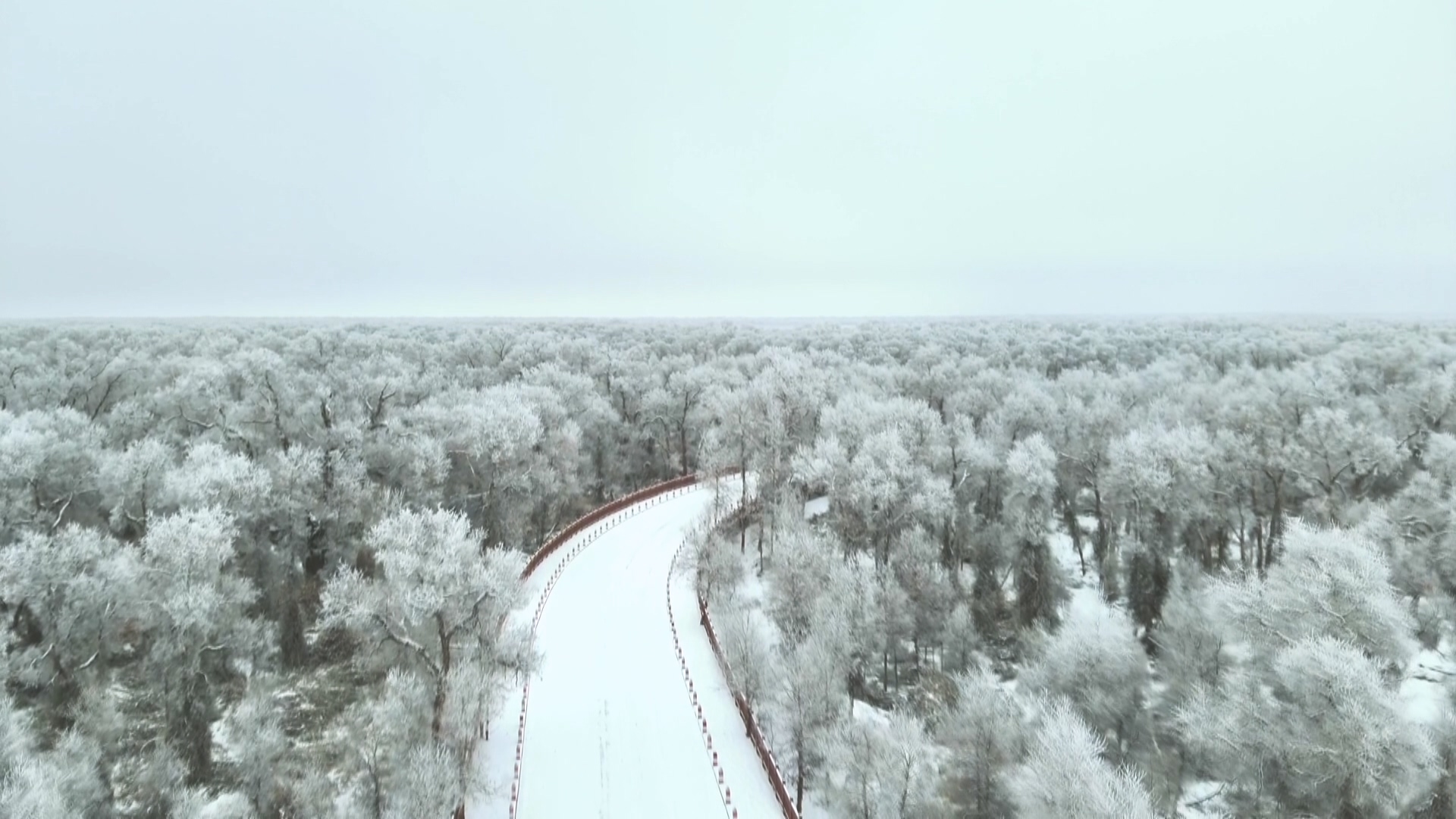 雾凇,俗称冰花、树挂等,是空气中过饱和水汽遇冷凝华而成。雾凇轻盈如柳絮,洁白如玉,漫步其中,仿佛置身童话世界。提起雾凇,许多人脑海里浮现的会是水畔凝霜、高山缀玉的画面,殊不知新疆沙漠里也藏着一份冰雪惊喜。