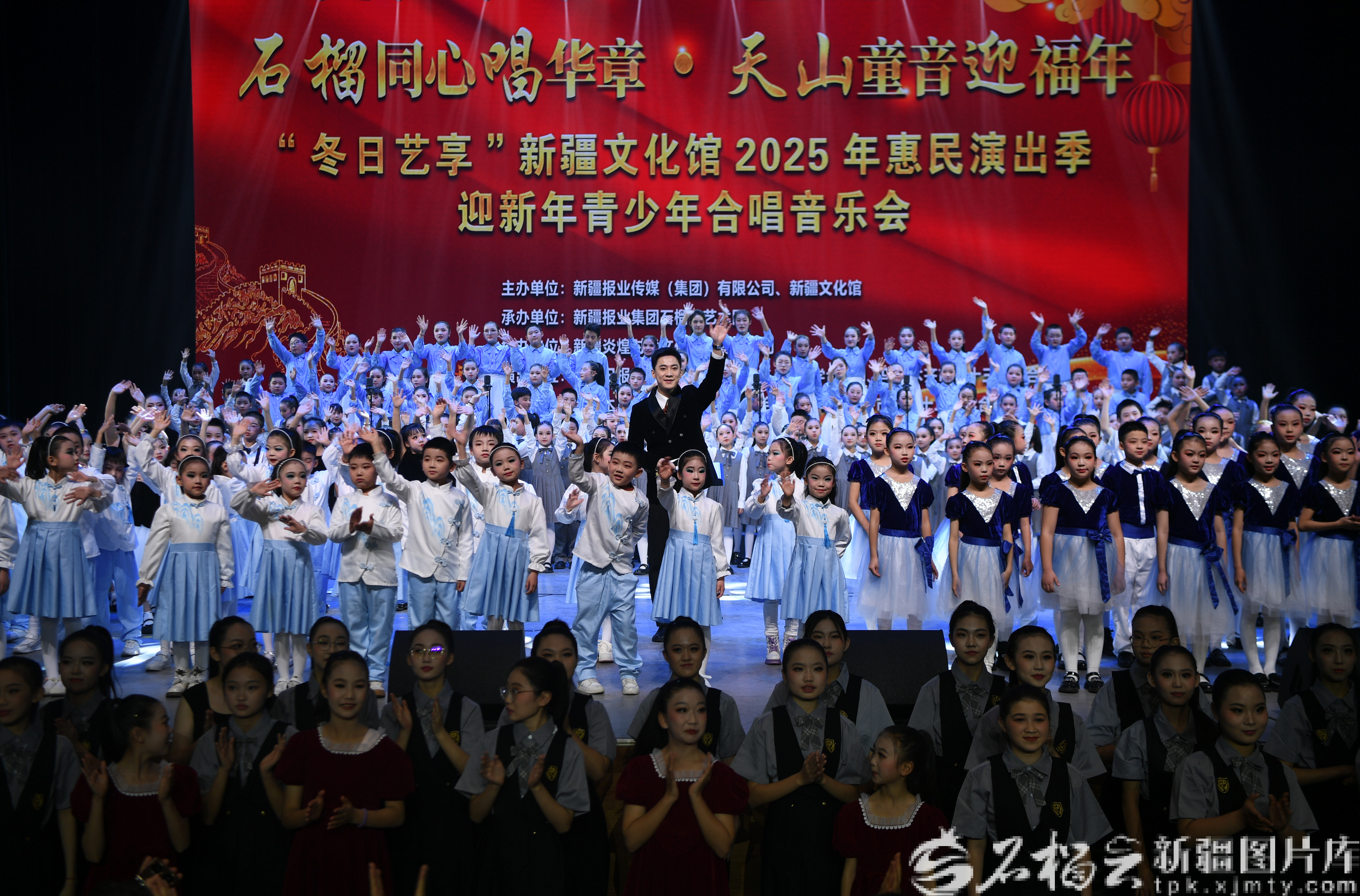 石榴云/新疆日报讯(记者 秦梅花摄影报道)12月28日下午,新疆文化馆演出大厅歌声飞扬、暖意融融,2025年惠民演出季迎新年青少年合唱音乐会在这里精彩开唱。