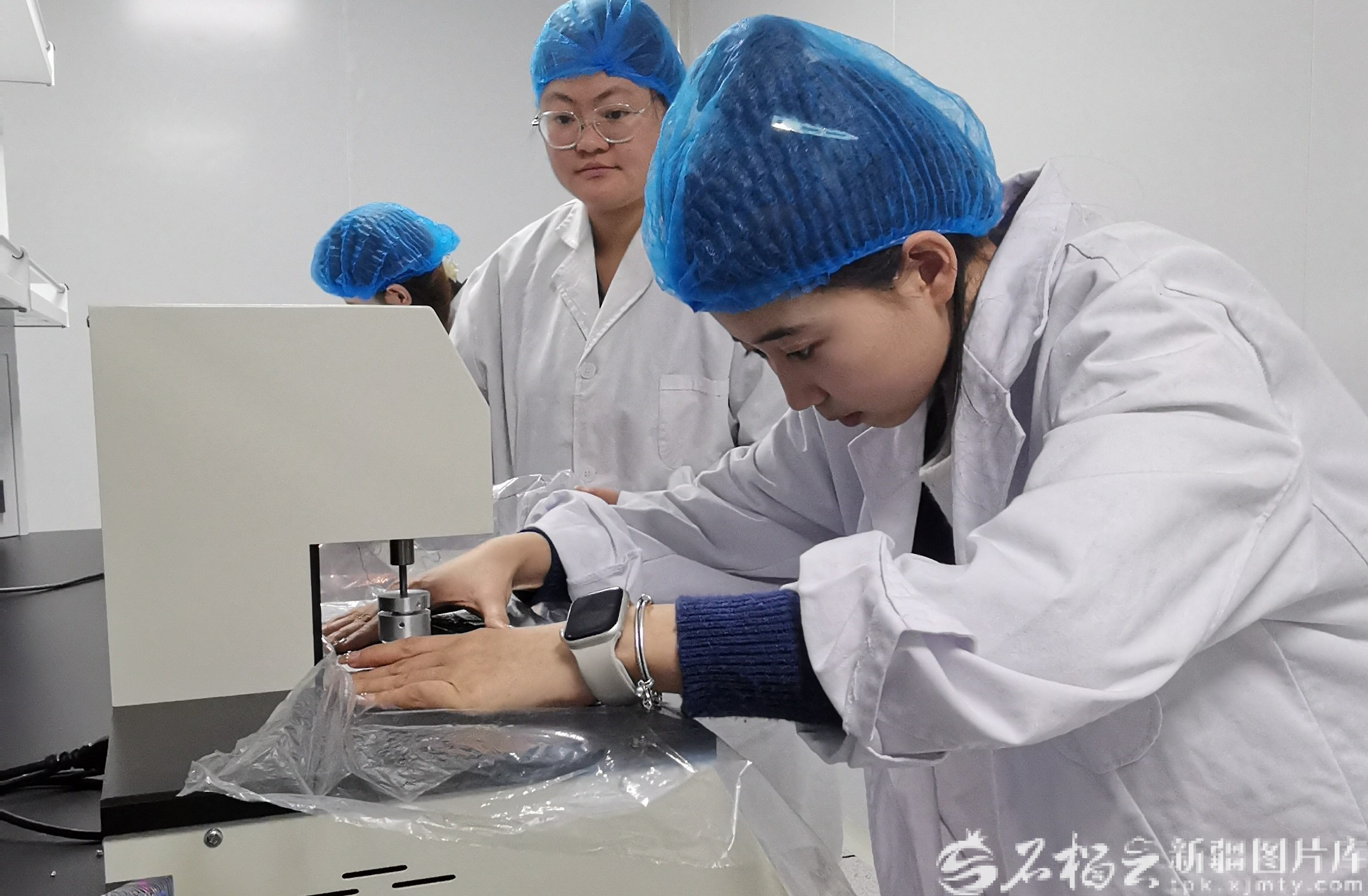 12月28日,在新疆农业绿色材料与土壤健康重点实验室,科研人员正在测地膜厚度。石榴云/新疆日报记者 盖有军摄