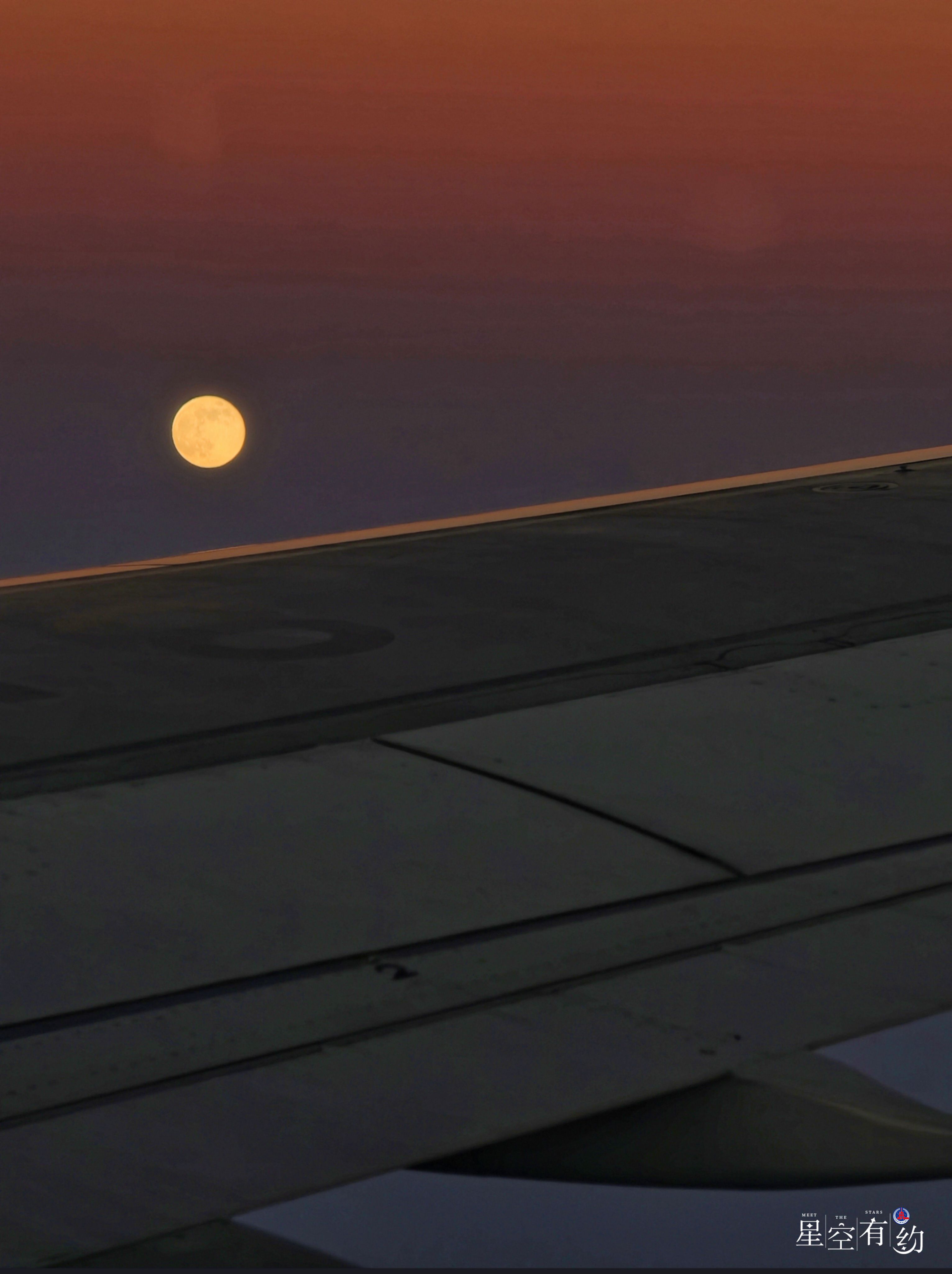 2025年12月5日,在飞行的飞机上拍摄的“超级月亮”。(钟奕 摄)