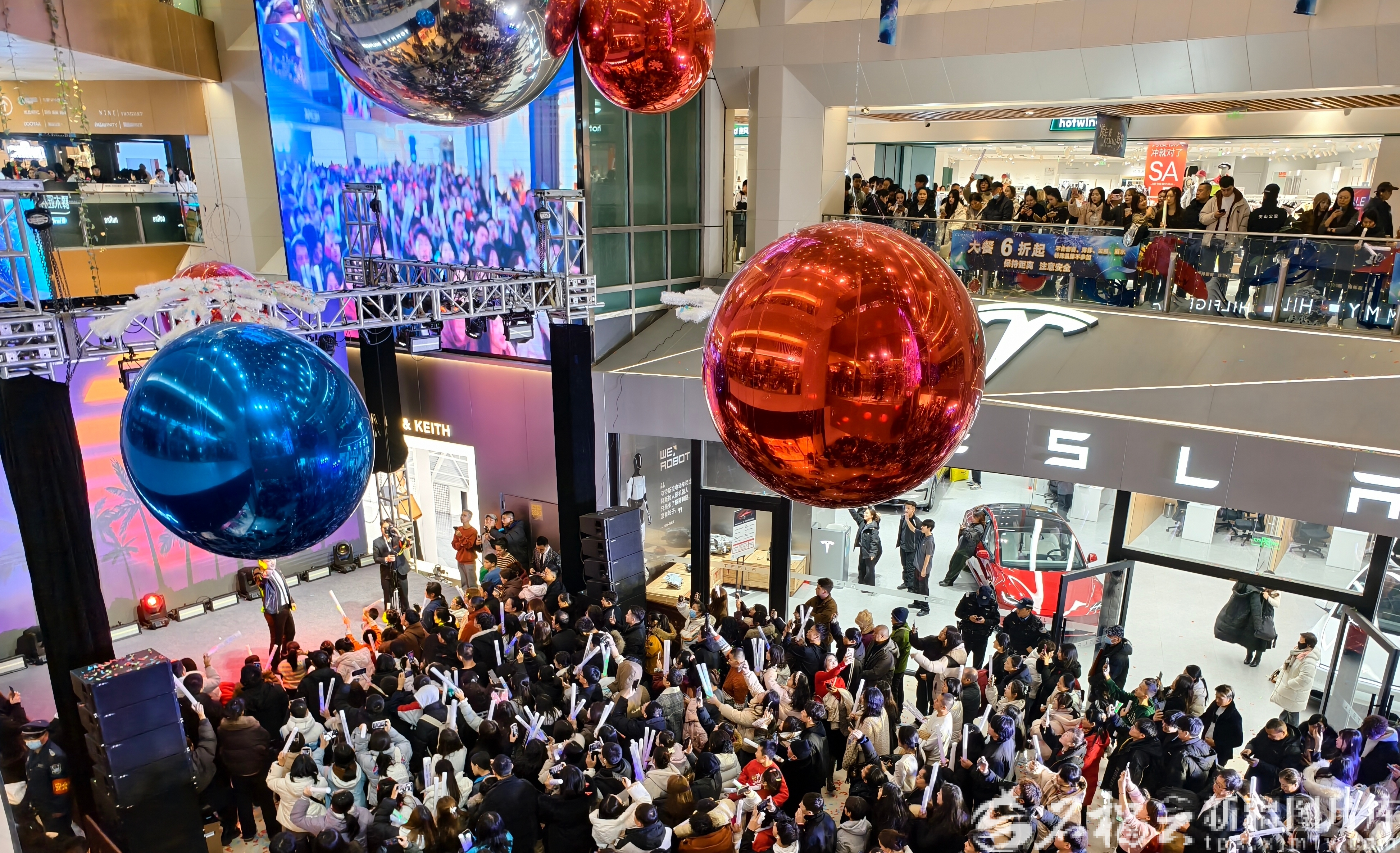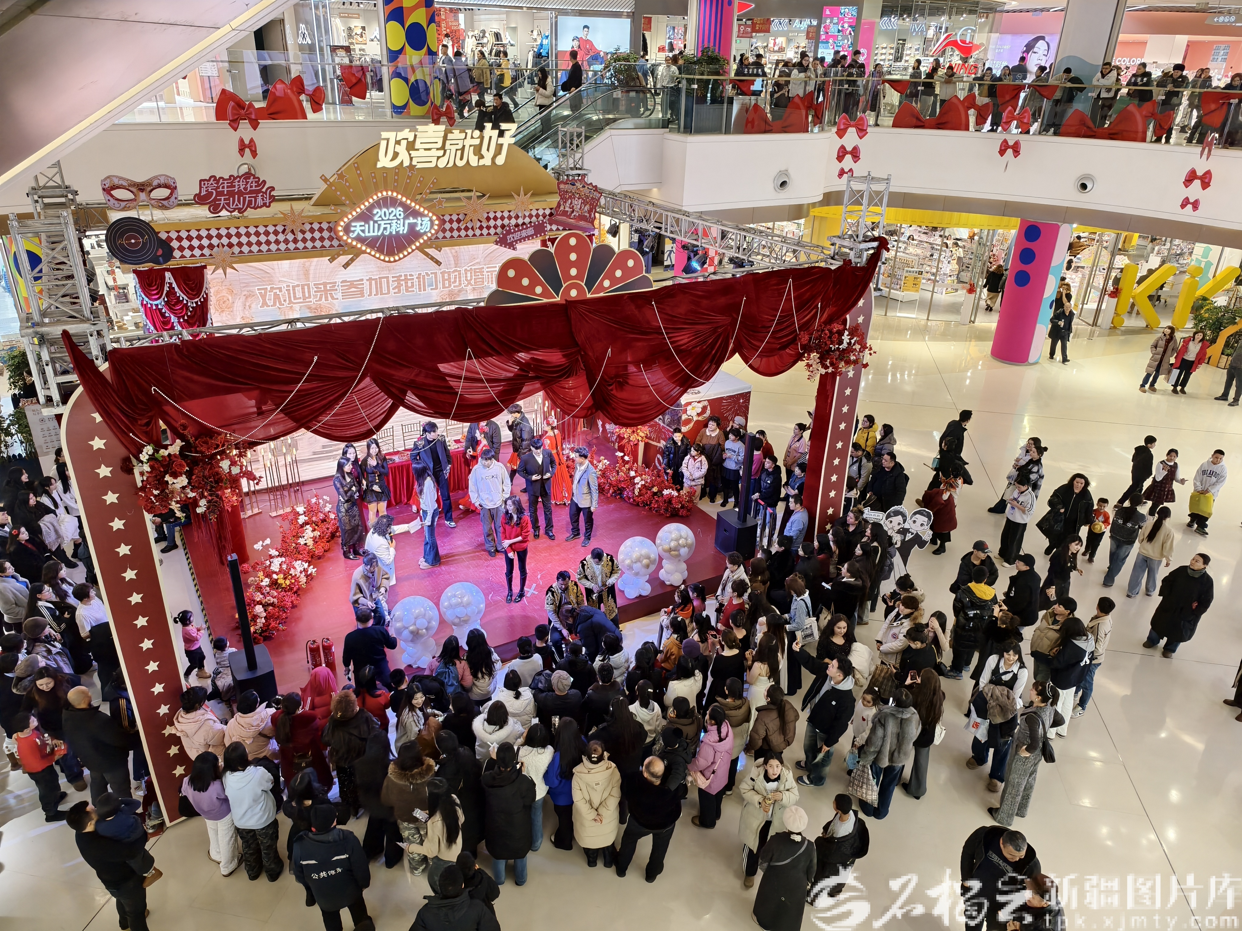2025年12月31日,乌鲁木齐CCMALL时代广场跨年夜活动,现场表演吸引消费者驻足观看。石榴云/新疆日报记者 黑宏伟摄
