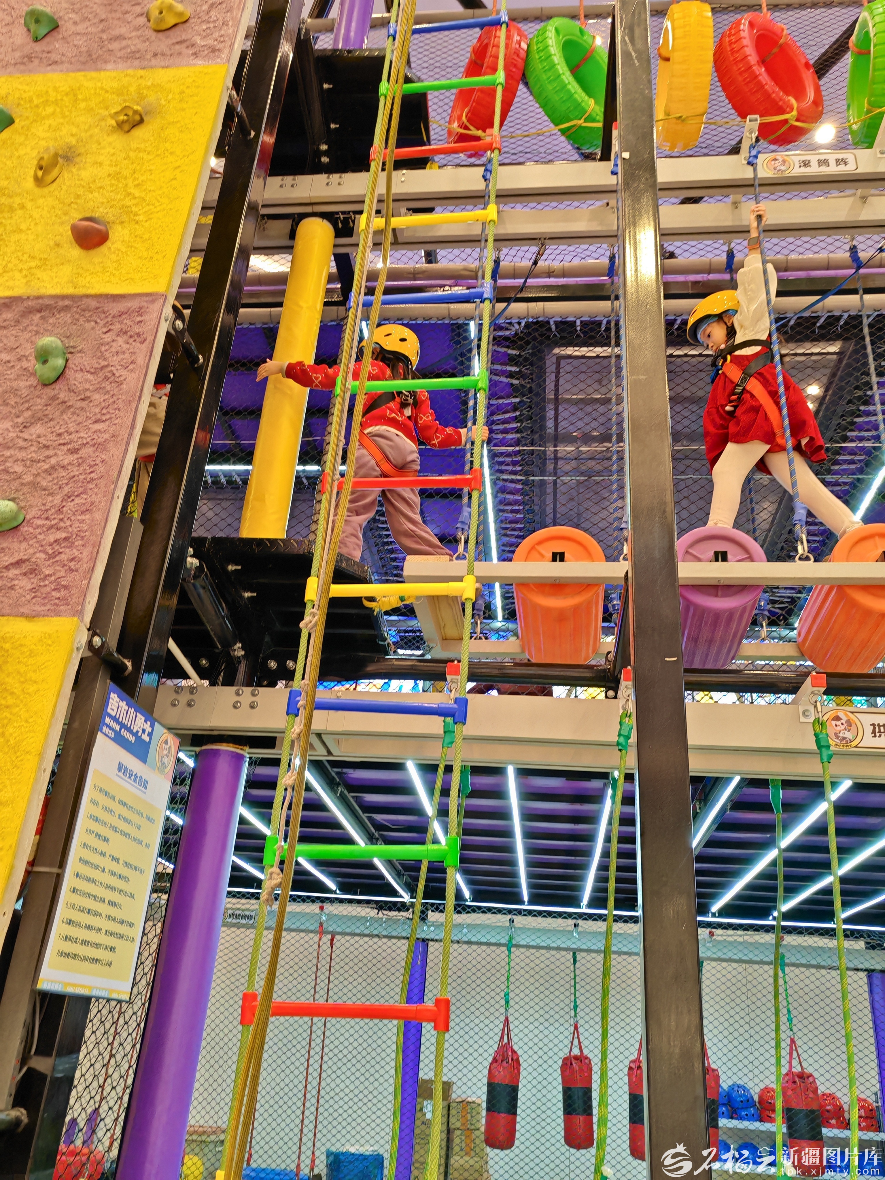 攀岩拓展深受孩子们喜爱。石榴云/新疆日报记者 黄兴摄
